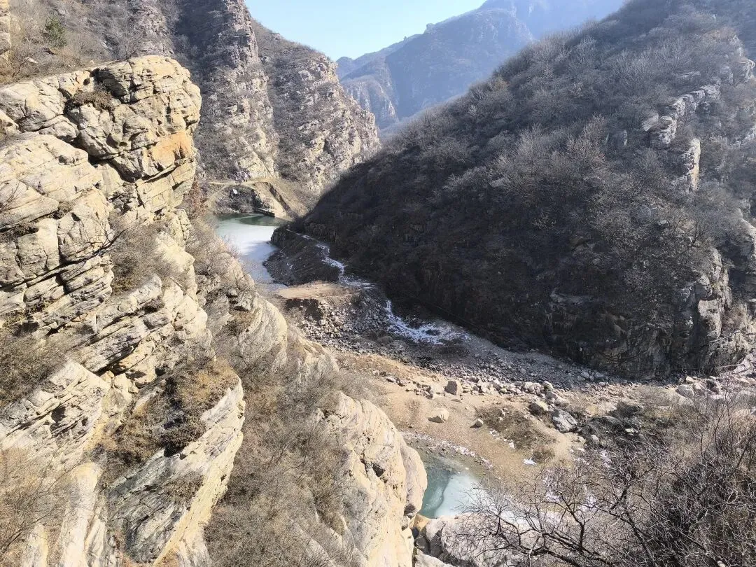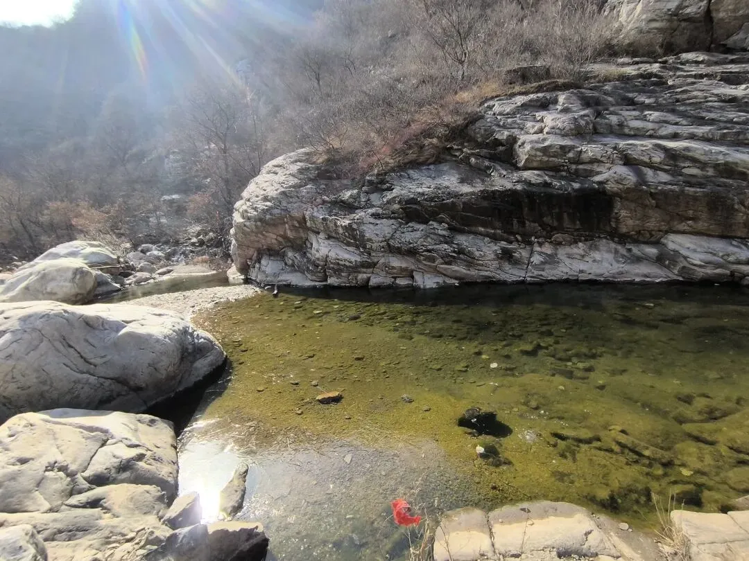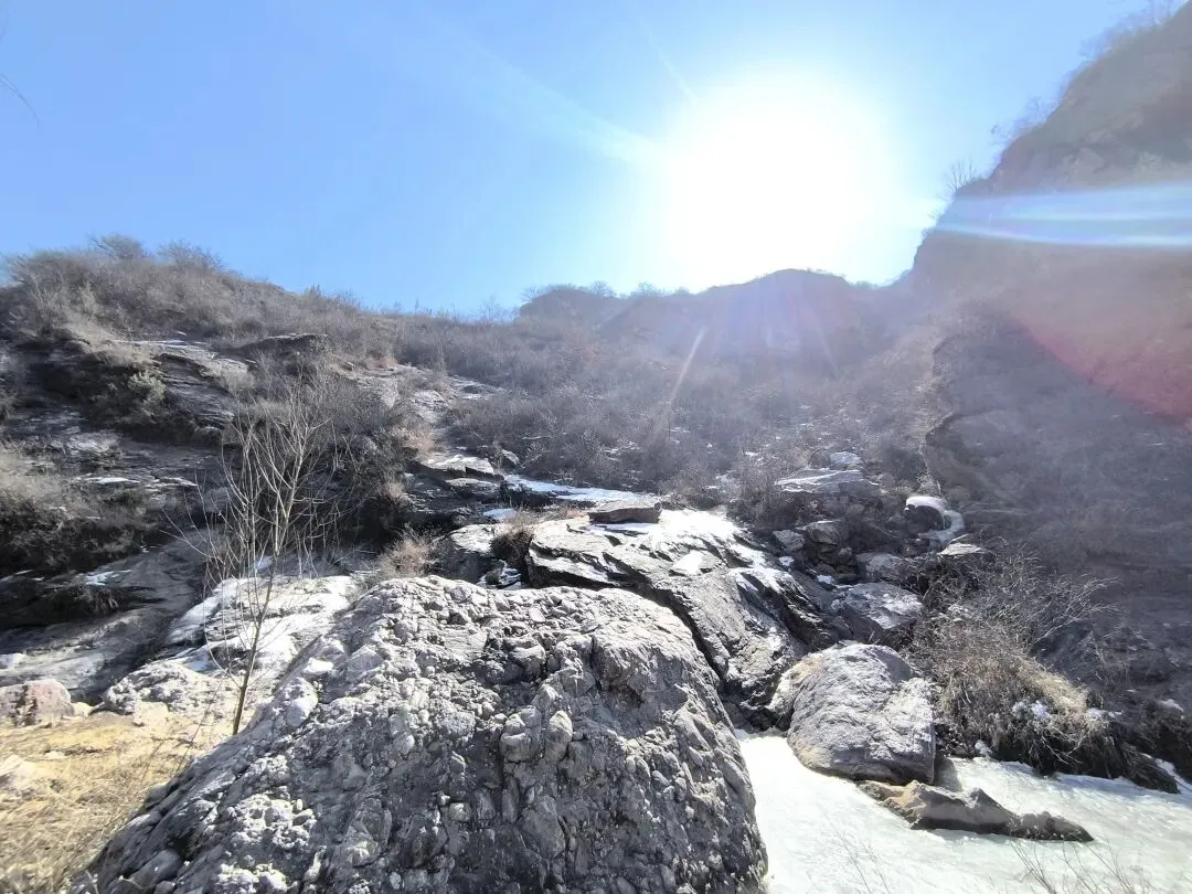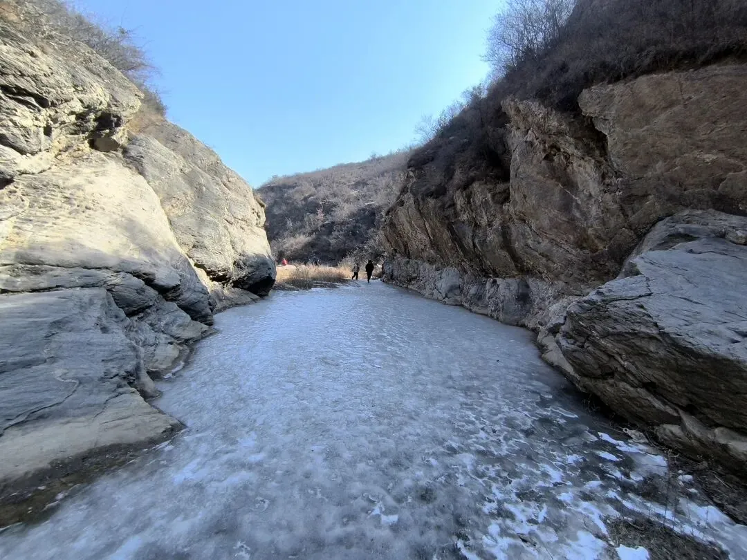 导航到黑龙潭停车场,嵩山大峡谷徒步腐败游拉开帷幕! 冬日的山谷寂寥无人,大约是温度低吧,刚下车时,鼻子酸,眼泪呼呼啦啦流,赶紧让马大夫找来了个口罩。 山谷溪流叮咚,水流缓慢的石头边上结冰了,有点悬空,形成魅力十足的图案,大自然的手笔,洒脱而独具特色。 天空湛蓝,云淡风轻,阳光洒满山坡,加上步行半个小时,暖和多了。 到达第一处天然溜冰场,小朋友立刻俯首膜拜,哈哈,全方位接触冰面。我也跟着走上去,滑溜溜的,特别有感觉。儿时的冬天,在村头大桥下拼命滑溜的画面浮现眼前。 以前的冬天,都是穿着母亲手工做的灯芯绒老棉鞋,麻绳纳的千层底儿,不像现在的运动鞋,没有什么防滑花纹,滑冰时间长了,鞋底都会结上一层冰,更加滑溜。 大人跟着孩子滑冰,滑溜溜的的冰面太有趣了,尤其是孩子们的动作,随意又搞笑,姿势帅不帅,不要紧,主打好玩。 大水坝的溪流飞花溅玉般落下,形成一排排冰挂,还有天然冰块的各种造型,犹如透明水晶,惹人喜爱。 我们比赛扔石头,看谁能砸到最下面的一排冰挂,哈哈,几个大人,像孩子般的大笑,谁投中了,大家都鼓掌! 背阴山谷中的雪随处可见,踩上去,硬邦邦的,吱吱呀呀的响,很有意思! 那远山呼唤我,曾经数次的走过,一年四季,风景各异,却是一样的心情美丽。人啊,终其一生,追求的不就是做喜欢的事情吗? 俯瞰峡谷,潭水冰白水碧,小路白雪犹存,好一幅自然画框。 山谷背阴处的潭水全部封冻,可以成为徒步的高速公路了,哈哈! 阴阳两重天,阳光下的水潭结了一层薄薄的冰,冰面下水藻碧绿,鱼儿游动,坐在石头上欣赏,plus晒太阳,惬意。 冰挂在线,有点大片的即视感,小朋友拿着石头砸冰,估计他们觉得特别有意思。我们也跟着砸着玩,哈哈,和一个小朋友说的一样,减压! 这种我们称之为“大眼睛”的植物,学名忘了,老记不住,还是含形似的“大眼睛”吧! 年龄越大,越喜欢自然的声音,看自然的风光,用脚步丈量人生风景。