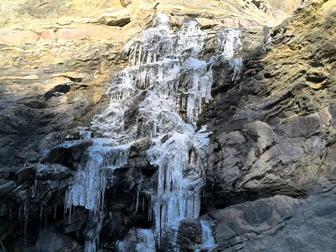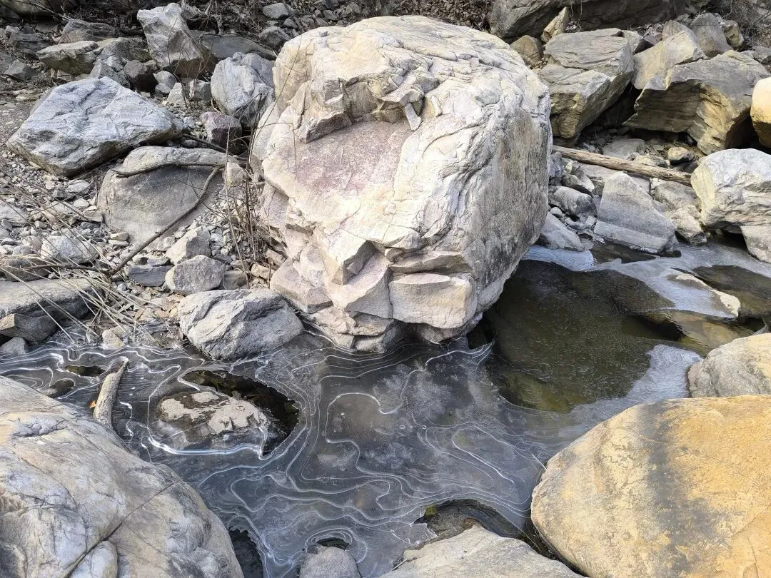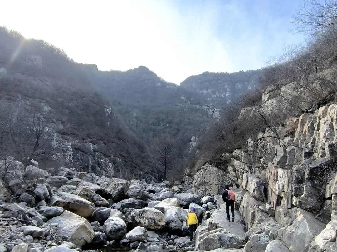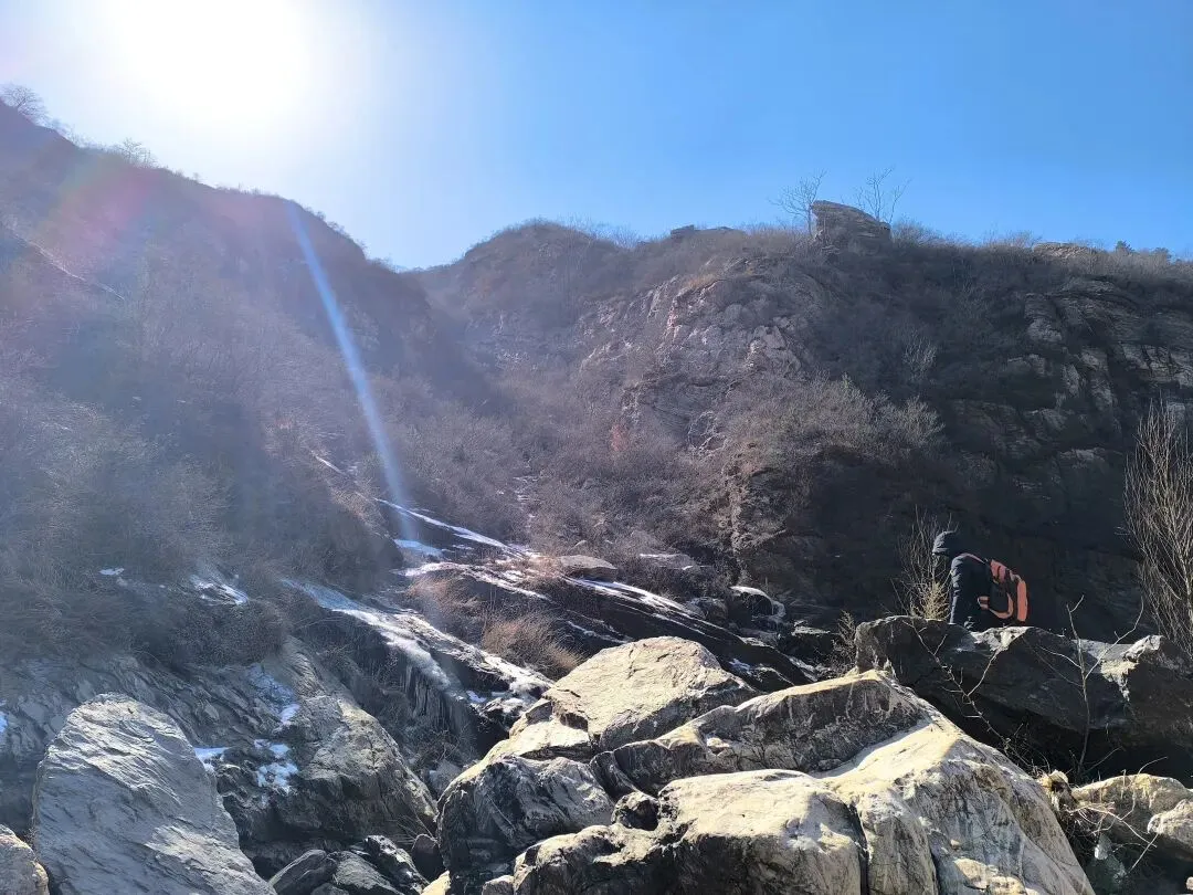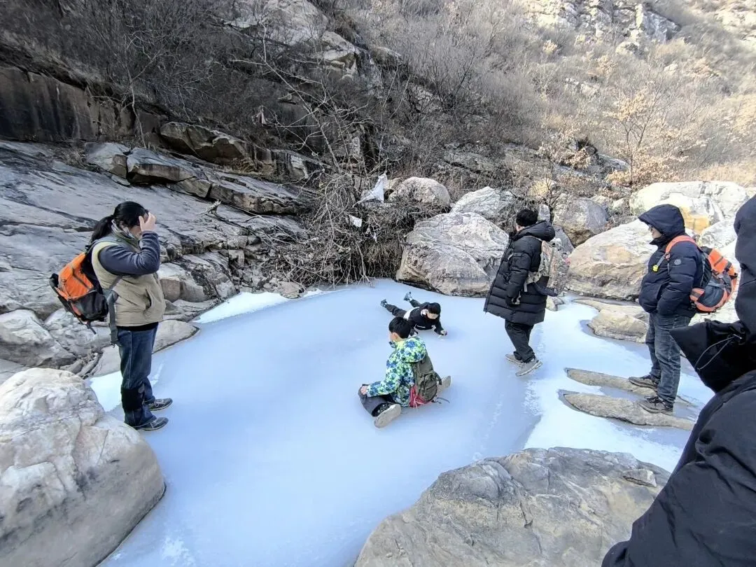 导航到黑龙潭停车场,嵩山大峡谷徒步腐败游拉开帷幕! 冬日的山谷寂寥无人,大约是温度低吧,刚下车时,鼻子酸,眼泪呼呼啦啦流,赶紧让马大夫找来了个口罩。 山谷溪流叮咚,水流缓慢的石头边上结冰了,有点悬空,形成魅力十足的图案,大自然的手笔,洒脱而独具特色。 天空湛蓝,云淡风轻,阳光洒满山坡,加上步行半个小时,暖和多了。 到达第一处天然溜冰场,小朋友立刻俯首膜拜,哈哈,全方位接触冰面。我也跟着走上去,滑溜溜的,特别有感觉。儿时的冬天,在村头大桥下拼命滑溜的画面浮现眼前。 以前的冬天,都是穿着母亲手工做的灯芯绒老棉鞋,麻绳纳的千层底儿,不像现在的运动鞋,没有什么防滑花纹,滑冰时间长了,鞋底都会结上一层冰,更加滑溜。 大人跟着孩子滑冰,滑溜溜的的冰面太有趣了,尤其是孩子们的动作,随意又搞笑,姿势帅不帅,不要紧,主打好玩。 大水坝的溪流飞花溅玉般落下,形成一排排冰挂,还有天然冰块的各种造型,犹如透明水晶,惹人喜爱。 我们比赛扔石头,看谁能砸到最下面的一排冰挂,哈哈,几个大人,像孩子般的大笑,谁投中了,大家都鼓掌! 背阴山谷中的雪随处可见,踩上去,硬邦邦的,吱吱呀呀的响,很有意思! 那远山呼唤我,曾经数次的走过,一年四季,风景各异,却是一样的心情美丽。人啊,终其一生,追求的不就是做喜欢的事情吗? 俯瞰峡谷,潭水冰白水碧,小路白雪犹存,好一幅自然画框。 山谷背阴处的潭水全部封冻,可以成为徒步的高速公路了,哈哈! 阴阳两重天,阳光下的水潭结了一层薄薄的冰,冰面下水藻碧绿,鱼儿游动,坐在石头上欣赏,plus晒太阳,惬意。 冰挂在线,有点大片的即视感,小朋友拿着石头砸冰,估计他们觉得特别有意思。我们也跟着砸着玩,哈哈,和一个小朋友说的一样,减压! 这种我们称之为“大眼睛”的植物,学名忘了,老记不住,还是含形似的“大眼睛”吧! 年龄越大,越喜欢自然的声音,看自然的风光,用脚步丈量人生风景。