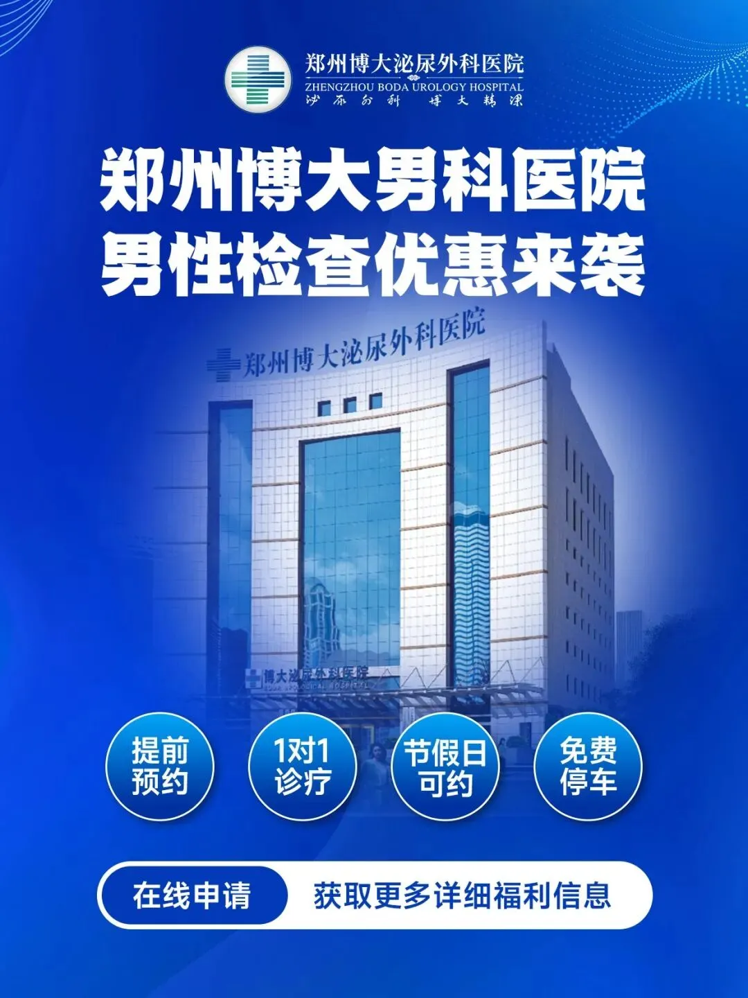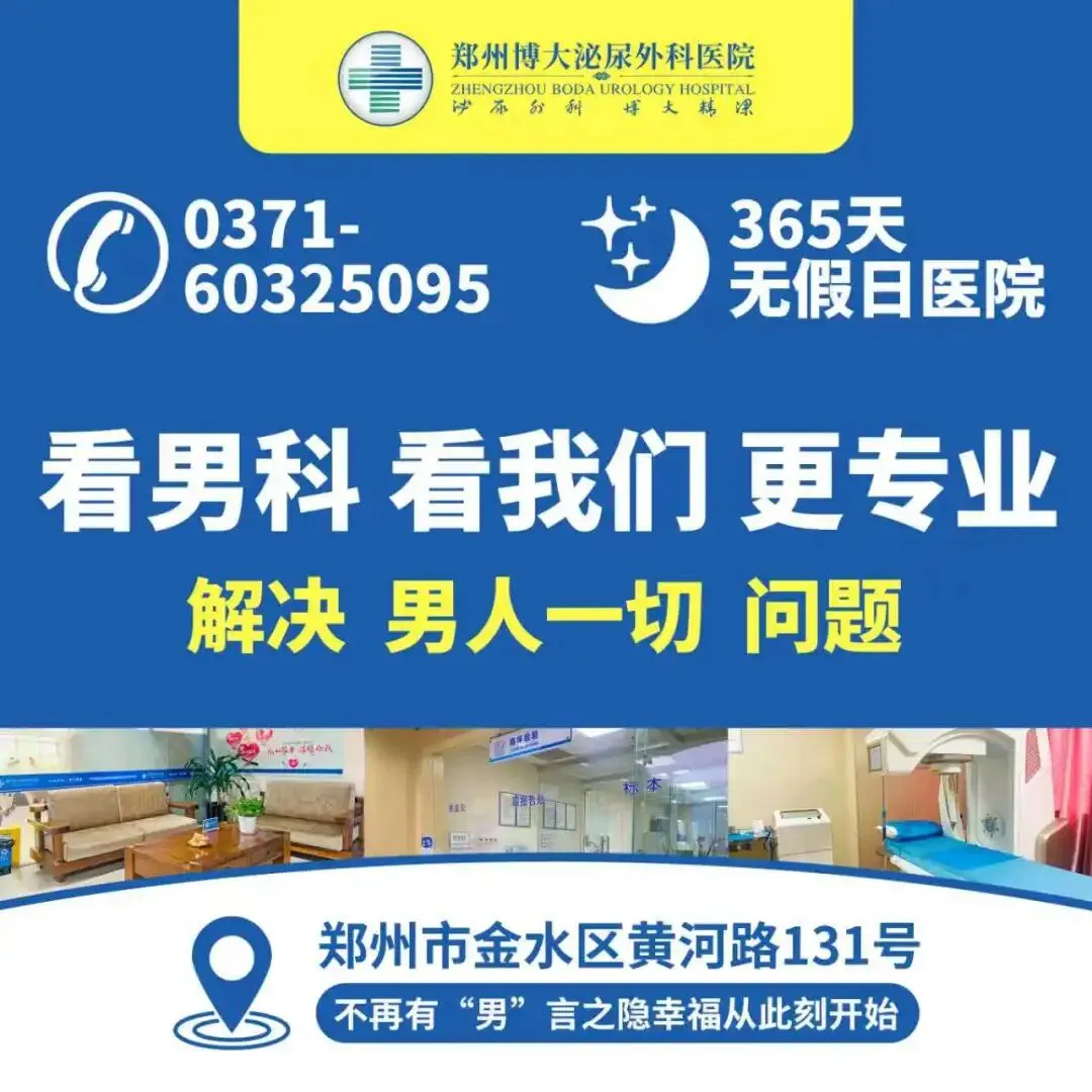 郑州博大男科医院地址位于郑州市金水区黄河路 130 号,交通便捷,支持在线、电话预约前列腺检查,到院无需排队,直接对接泌尿专科医生,快速完成检查并制定诊疗方案,全程规范诊疗,帮你摆脱前列腺肥大的排尿困扰,守护泌尿健康。