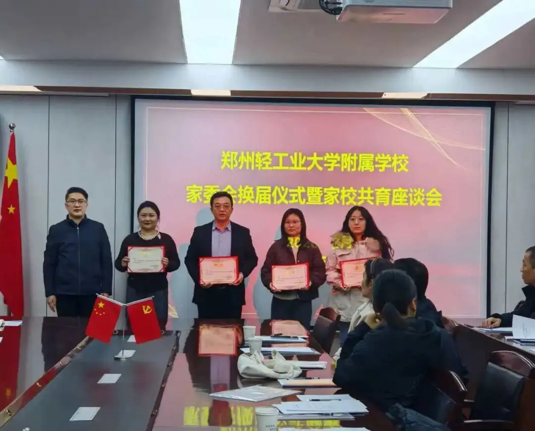 郑州轻大附中校长刘磊为新当选的家委会委员颁发聘书并合影留念。家委会主任张来欣发言,他对学校的教育教学工作给予了高度的信任与肯定,表示今后将带领家委会全体成员,认真履行家委会职责,当好家校沟通的“连心桥”、家校协作的“助力者”、学生成长的“护航者”,与学校携手并肩,共同为孩子们营造温馨和谐的成长环境。