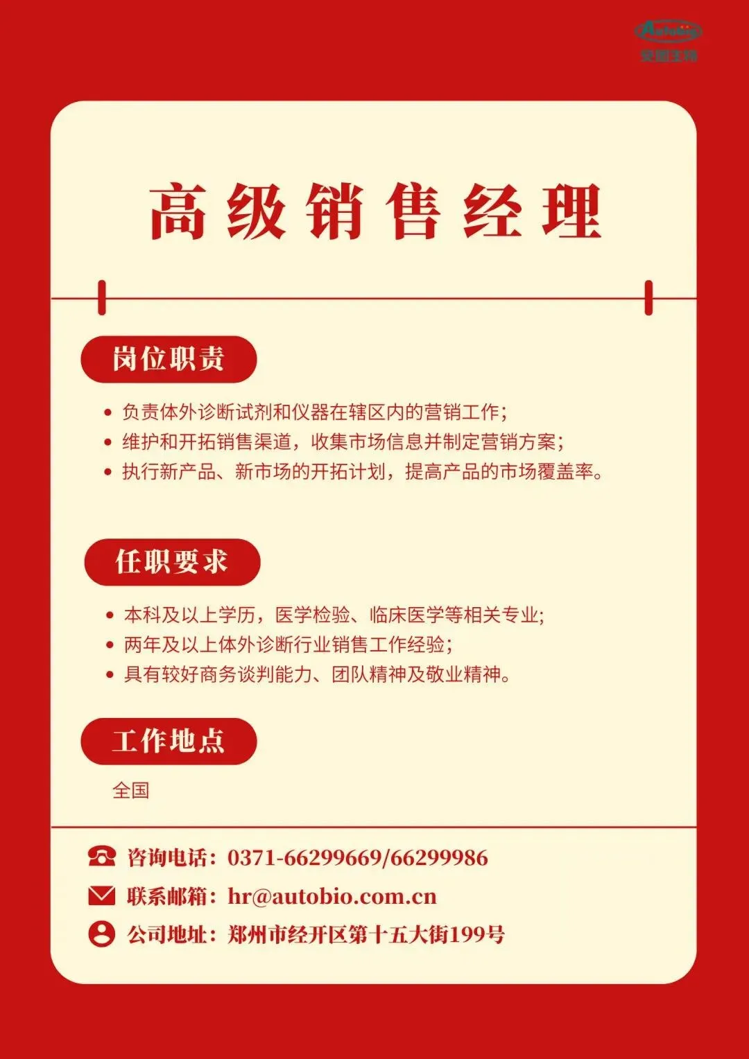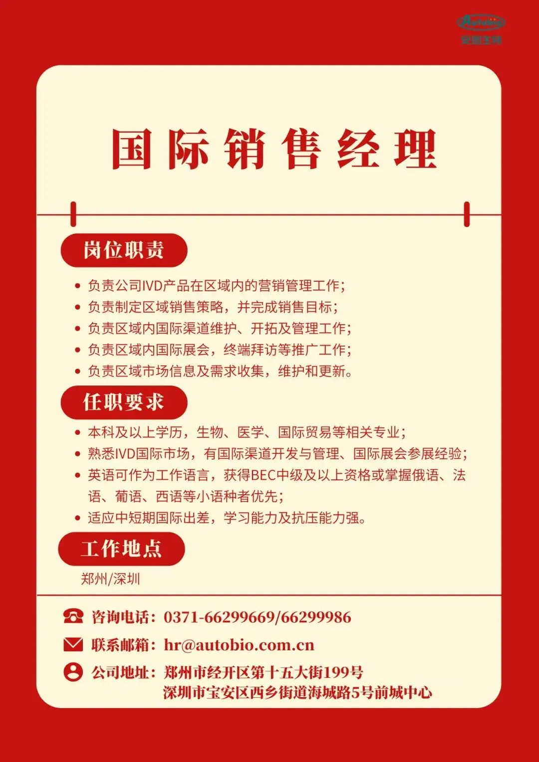 郑州安图生物招聘(社招)