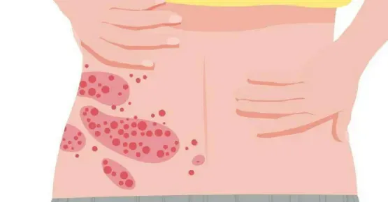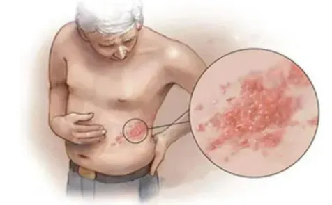 - 皮疹:通常沿身体的一侧神经分布区域出现,呈条带状排列的水疱,不跨过身体中线(比如腰部、胸部、面部等)。
