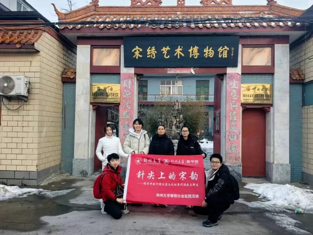 寒冬腊月,年味渐浓,郑州大学商学院寒假社会实践汴绣承宋队怀揣对传统文化的敬畏之心,奔赴八朝古都开封,开展了为期两天的“针尖上的宋韵——探寻开封汴绣非遗文化的当代传承与新生”实践活动。