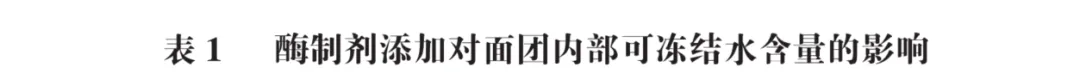 可冻结水指食品冷冻过程中最易发生相变的水分,可显著影响食品的结构稳定性和质构品质。从表1可以看出,与新鲜面团相比,冻融循环面团的可冻结水质量分数显著增加,为13.84%,这是因为冻融过程中温度的波动会削弱水分与淀粉、蛋白质等聚合物分子间的相互作用,使得液态水容易形成冰晶。此外,冻融还可导致冰晶发生重结晶,导致冰晶变大,这可能会进一步破坏面团内部特征组分的微观结构,改变其与水分子的结合能力,导致可冻结水含量的增加。然而,与冻融面团相比,酶制剂的添加可显著降低面团内部的可冻结水质量分数,由13.84%降至最低11.56%,且随着α-淀粉酶添加比例的提升,其面团内部可冻结水含量呈现逐渐下降的趋势。这可能由于α-淀粉酶添加量为0%时,TG的存在可通过增强面筋蛋白分子间的交联提升面筋网络结构的稳定性和强度,从而有利于其锁住更多的水分子,降低其可移动能力,阻碍冰晶的形成;此外,α-淀粉酶能够作用于淀粉的分子链结构,使其降解并释放出较短的线性链,其分子表面暴露出更多亲水区域,更易与水分子发生结合,从而提升其水合能力与结合强度,促使冷冻面团内部可冻结水含量随着α-淀粉酶添加量的提高而呈现不断下降趋势。与此同时,α-淀粉酶特异性降解破损淀粉能够形成麦芽糖、麦芽三糖和其他低聚糖,此类小分子糖可以作为防冻剂,提高体系的渗透压,使得部分原本可能冻结的水分变得不易冻结,降低冷冻面团的可冻结水含量。