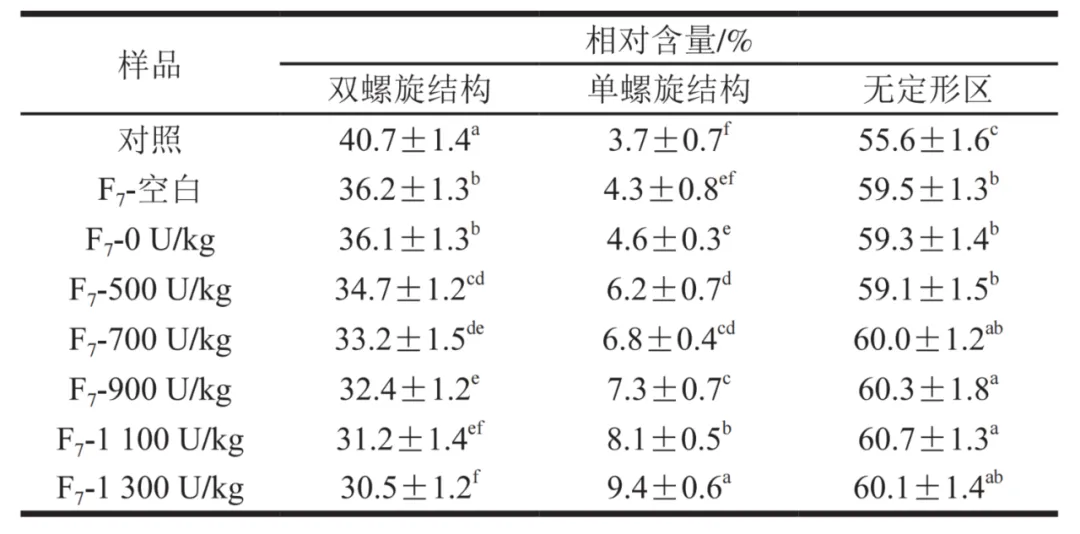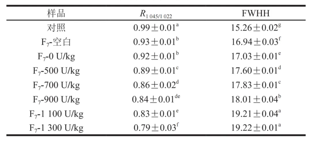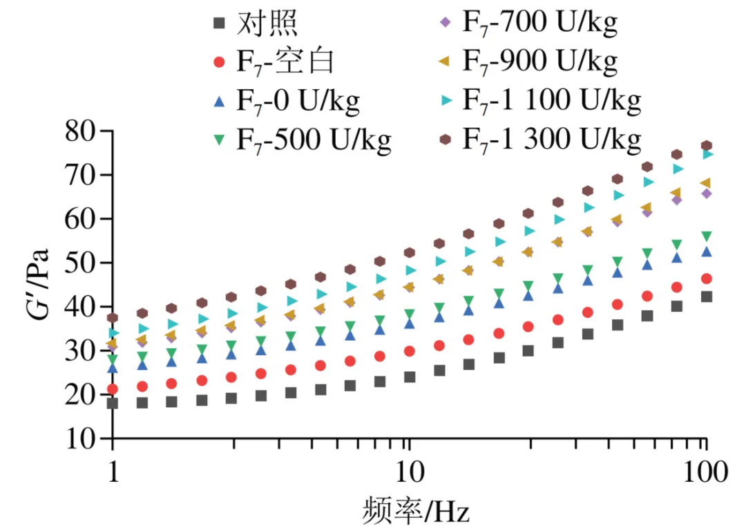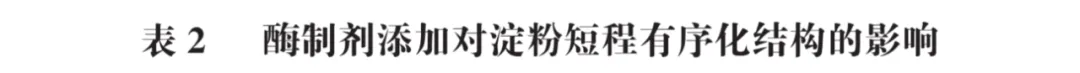 酶制剂作为一种生物催化手段,具有绿色安全、反应迅速、高度专一性等优点,且在最终面制品中已基本失活,因此被应用于冷冻面团及其制品的加工过程中。其中,谷氨酰胺转氨酶(TG)和α-淀粉酶是冷冻面团加工中常用的两类酶制剂。此外,淀粉作为是冷冻面团中的主要组成成分,占面粉质量的60%以上,研究其超分子结构和理化性能的变化规律,对于延缓冷冻面团及其面制品的品质劣变具有重要意义。
