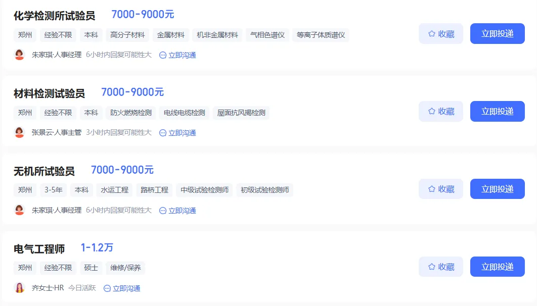 1、 本科学历,分析化学等相关专业;2、 有ICP-OES、GC/MS、AAS、DSC等仪器使用经验者优先;3、 熟悉CMA/CNAS体系要求,具备方法开发或验证经验者优先;4、 熟练使用Office等办公软件;5、 吃苦耐劳,抗压能力强,可接受一定程度的加班;6、 工作严谨、责任心强,具备良好的沟通能力和团队协作精神;有C1及以上驾照。