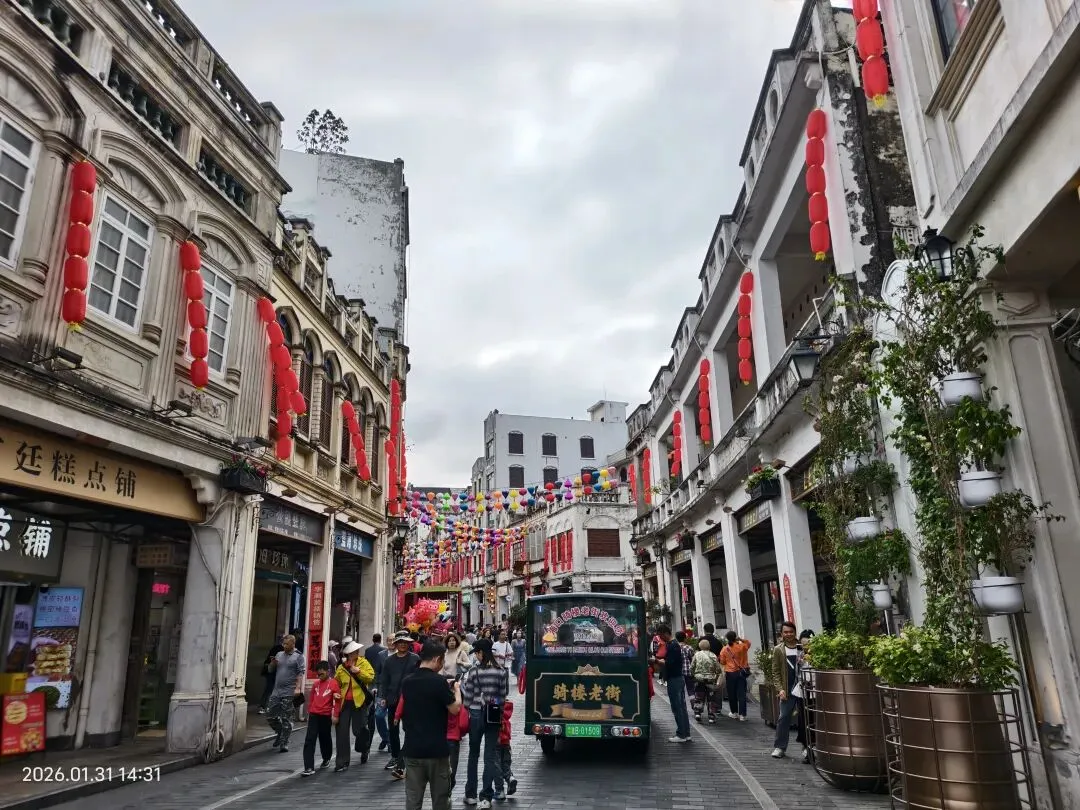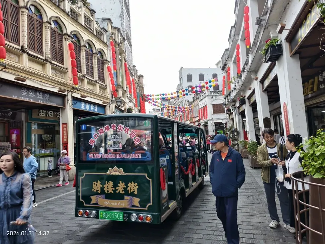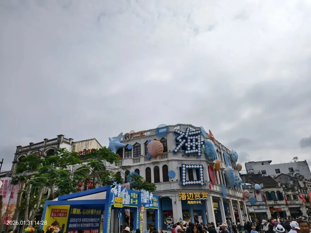 车行至正午时分,途径定安县,专门绕至仙沟,只为赴一场舌尖上的约会——大名鼎鼎的仙沟“动动小牛肉”。刚走进热闹的市集,现切现涮的牛肉档口便香气扑鼻。新鲜的黄牛肉在滚烫的汤底中轻轻一涮,肉质鲜嫩弹牙,裹上秘制酱料,鲜香在舌尖瞬间炸开,那独有的风味,让我们至今回味无穷。酒足饭饱,继续赶路,下午的目的地是海口骑楼老街。这里早已是人头攒动、摩肩接踵,百年南洋风格的骑楼在阳光下熠熠生辉,骑楼下的商铺里,珍珠、咖啡、特色手工艺品琳琅满目,让人目不暇接。我们穿梭在熙熙攘攘的人群中,感受着海岛独有的市井烟火气,直到暮色四合才依依不舍地离开。当晚,我们下榻在新海港附近的酒店,房间往北百余米便是琼州海峡。夜深人静,涛声阵阵,伴着咸湿的海风,我们枕着海浪声安然入梦。