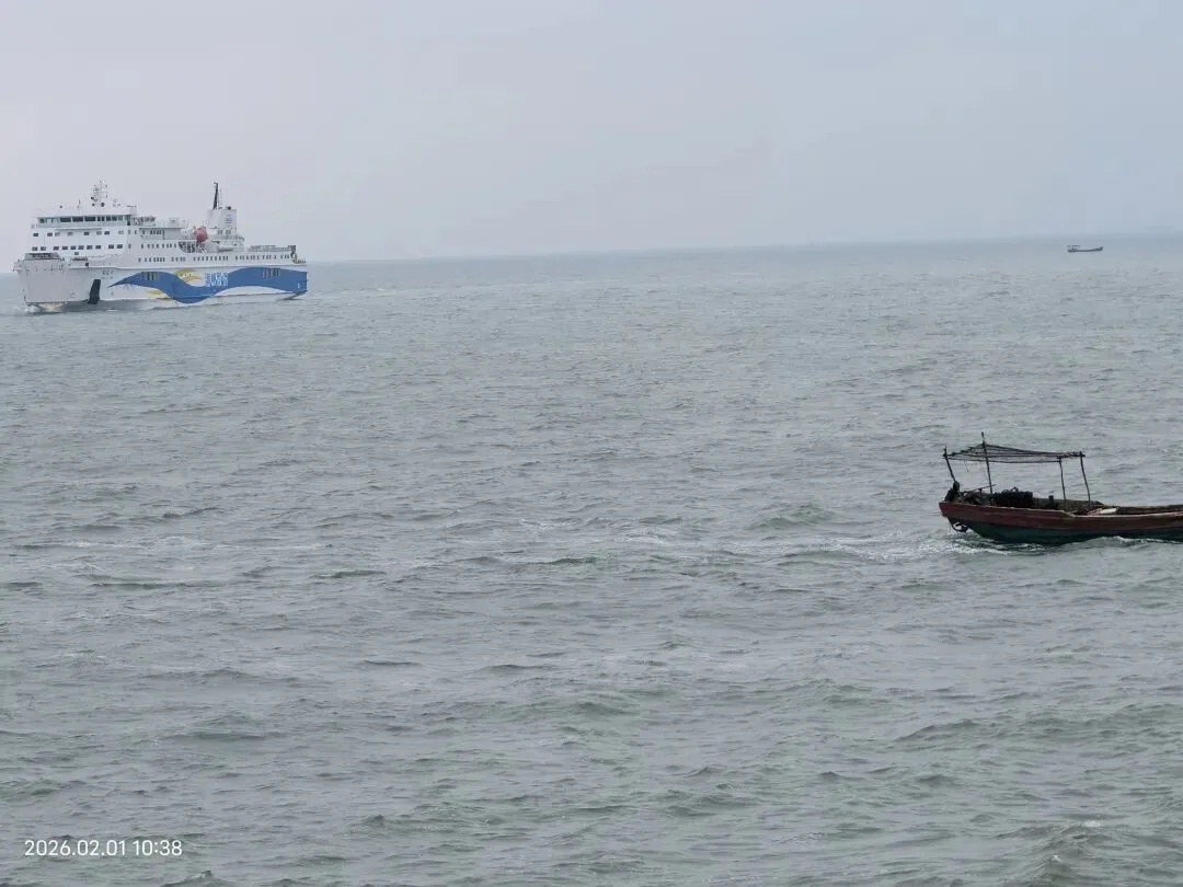 二月一日上午九点半,渡海的汽笛声准时响起。站在轮渡甲板上,再次凝望琼州海峡,冬日的海面波涛汹涌,白色的浪花拍打着船舷,成群的海鸟在天际翻飞,发出清脆的鸣叫。时隔两月,再次踏上北渡的航程,想到离家越来越近,心中便涌起一股难以言喻的激动。船行一个多小时我们顺利到达徐闻港。回望港口,准备进岛的车辆排起了近一公里的长龙,与我们归心似箭的心情形成了鲜明的对比。