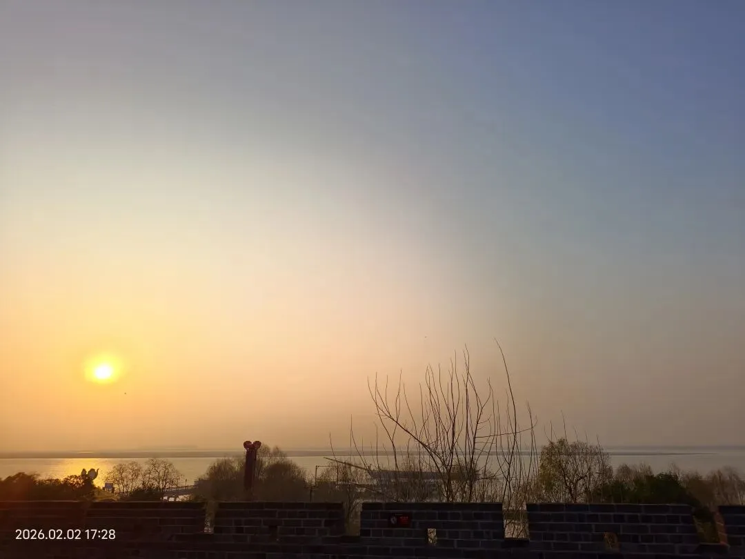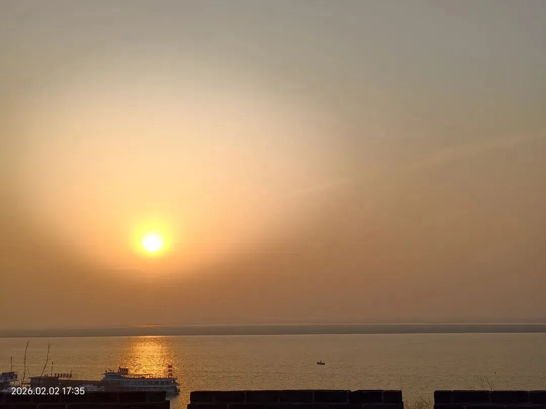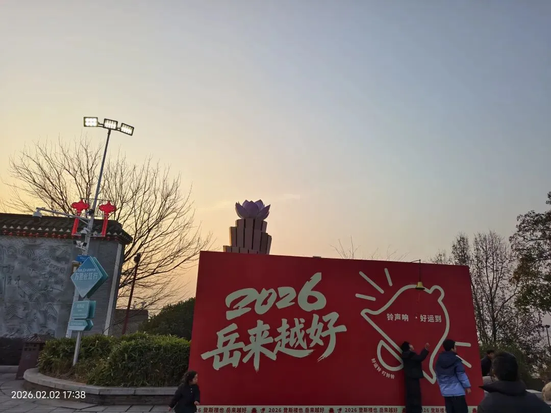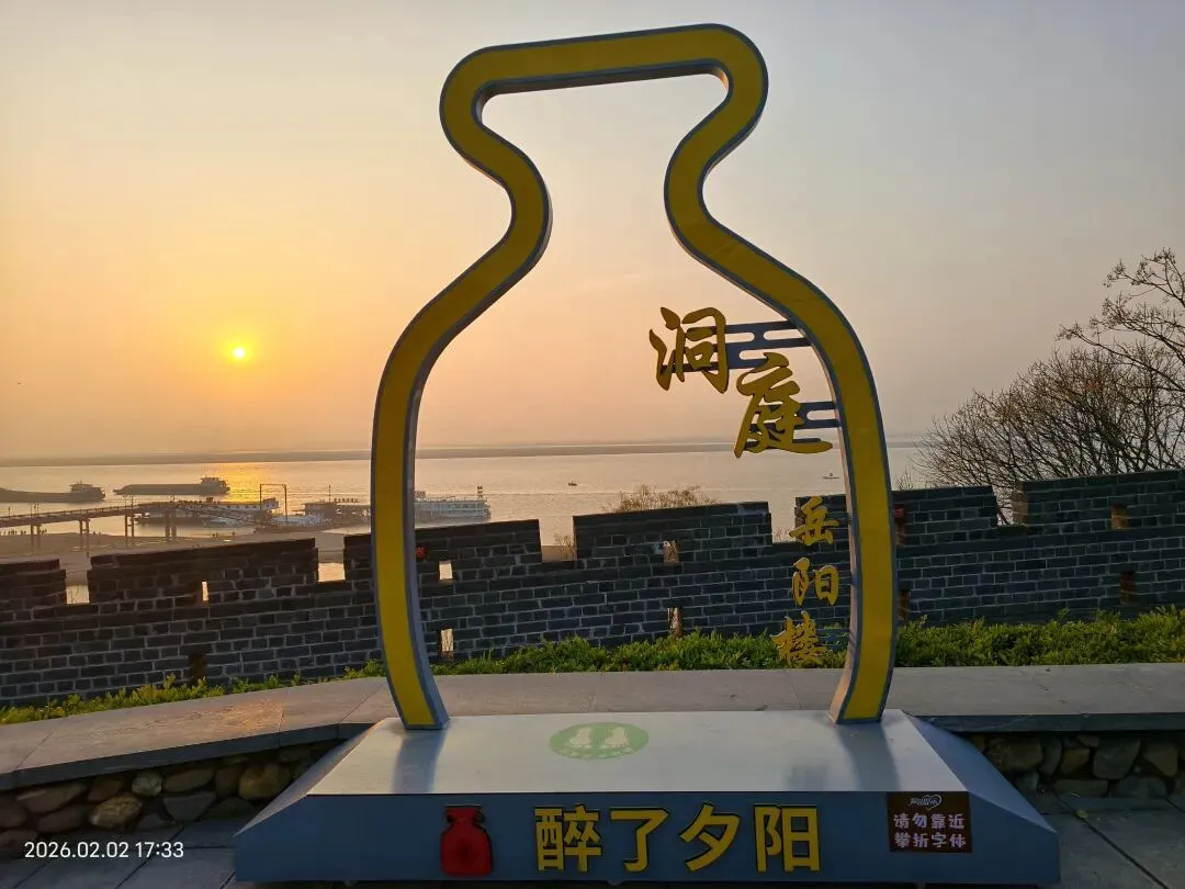 二月二日,归程进入第三天,大家更是归心似箭,沿途的青山绿水也无心留恋。下午五点多,我们抵达湖南岳阳,第一站便直奔心心念念的岳阳楼,可惜景区已闭门谢客。略带遗憾的我们转而来到巴陵广场,却意外收获了一场视觉盛宴——夕阳西下,金色的余晖洒在浩渺的洞庭湖面上,波光粼粼,渔舟唱晚,构成了一幅绝美的洞庭落日图。这份“失之东隅,收之桑榆”的惊喜,让我们喜出望外。当晚,我们自然少不了品尝颇具盛名的洞庭鱼鲜,鲜美的鱼汤让味蕾得到了极大的满足。