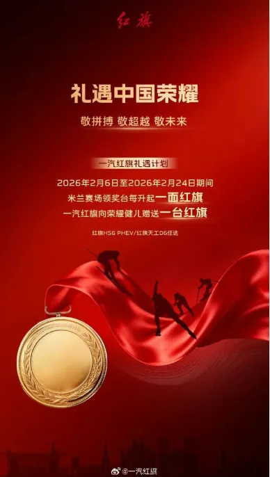 中国第一汽车股份有限公司官方微博2月8日消息,红旗礼遇计划正式启动:2026年2月6日至2026年2月24日期间,米兰赛场颁奖台每升起一面红旗,一汽红旗向荣耀健儿赠送一台红旗。