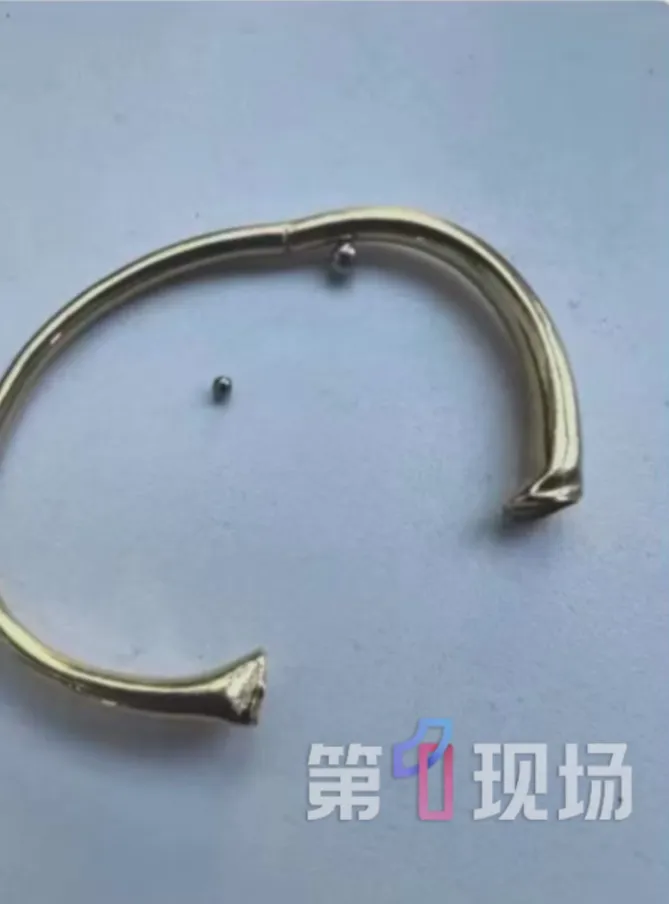 近日,深圳一女顾客的黄金手镯断裂,回收时掉出2颗钢珠致克重少0.3克,店主召回同批次7个手镯拆验,未发现钢珠却有2个倒出水迹,加工方否认塞钢珠,店主已赔偿,损失约两万,问题仍在核查。