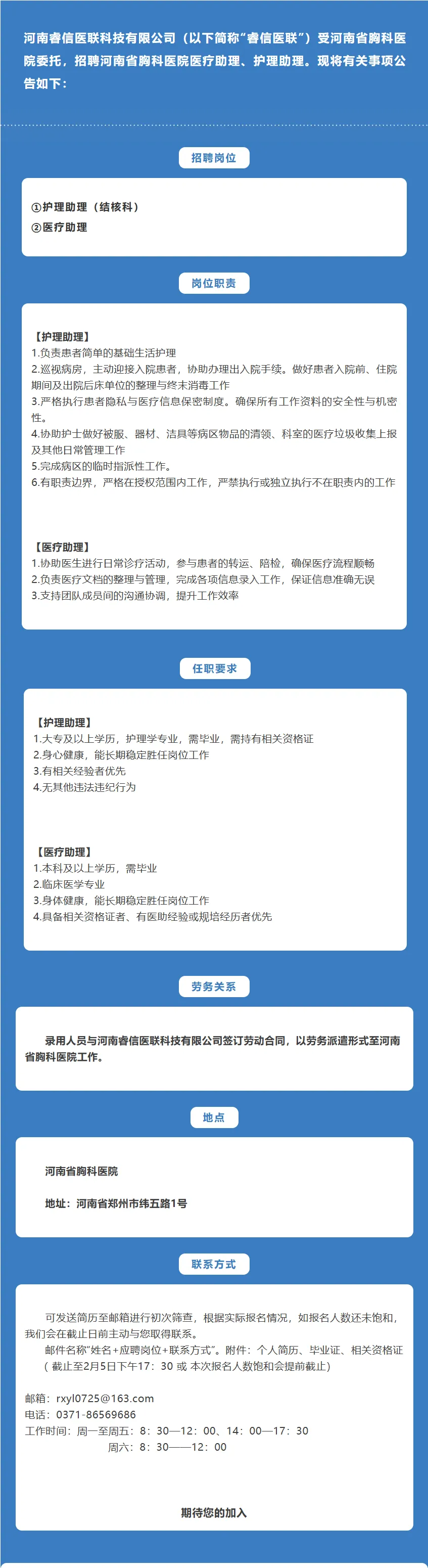 >郑州医院招聘,河南省胸科医院2026年2月招聘公告