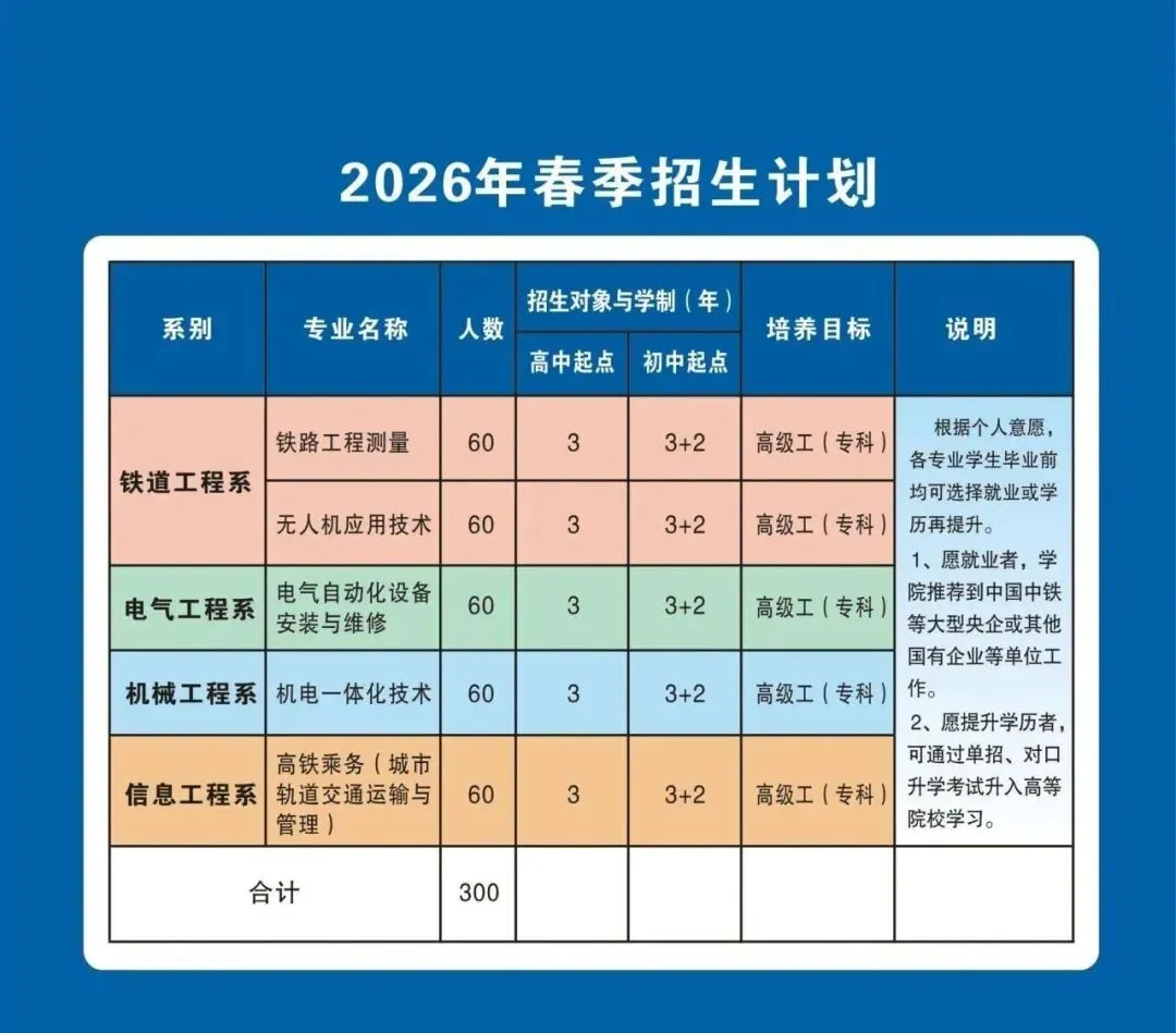 郑州铁路技师学院招生简章(2026最新版)(1)招收15周岁以上具有初中文化程度应往届毕业生。