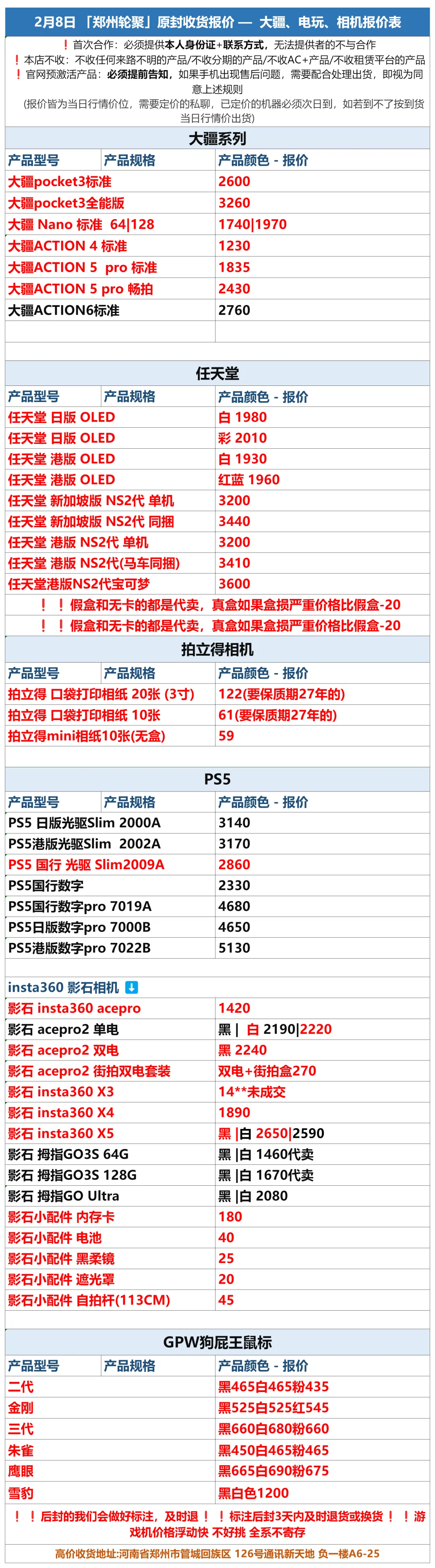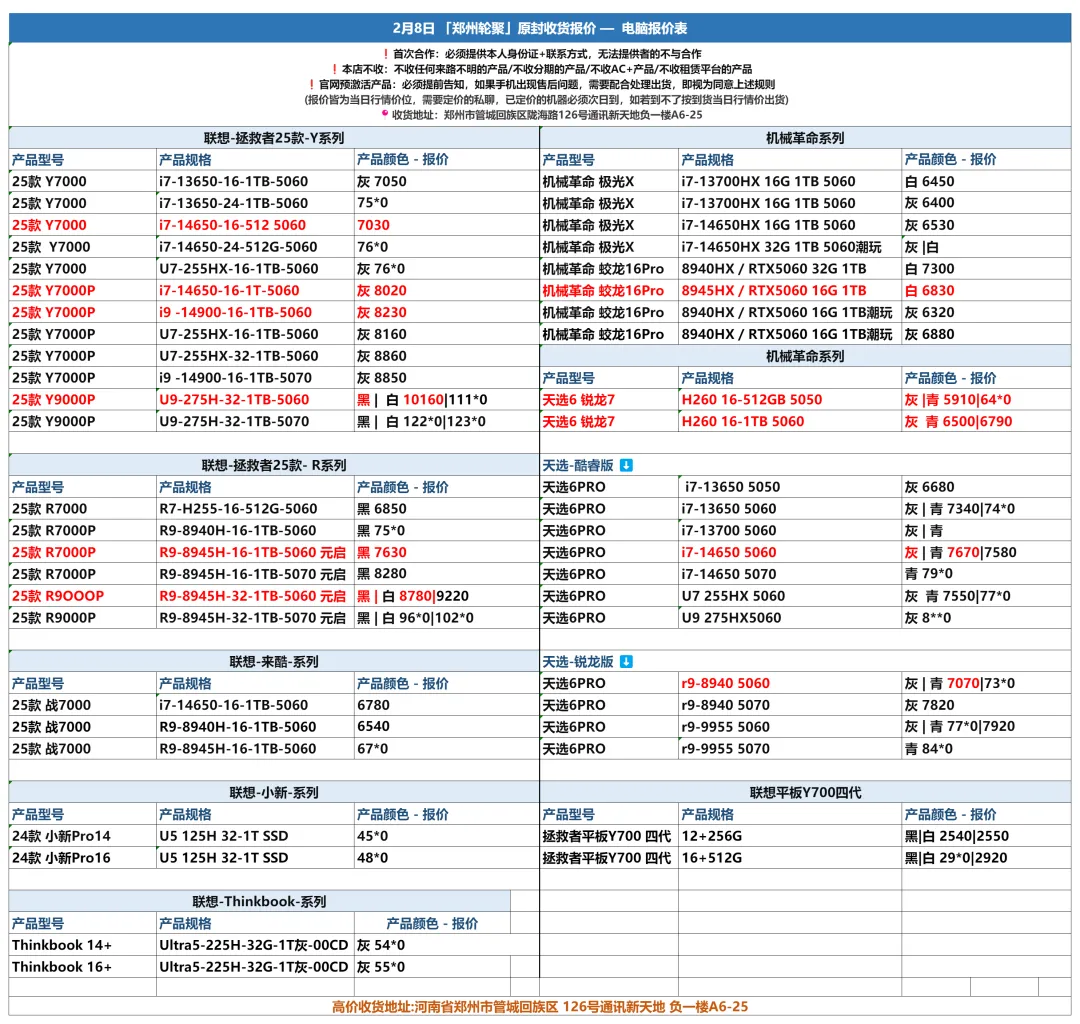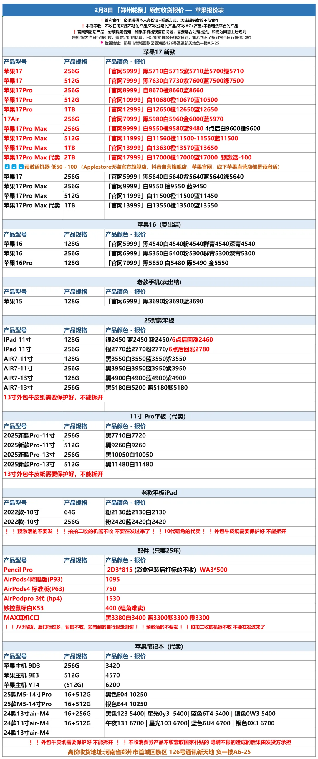 郑州轮聚通讯 2026年2.8日数码报价更新