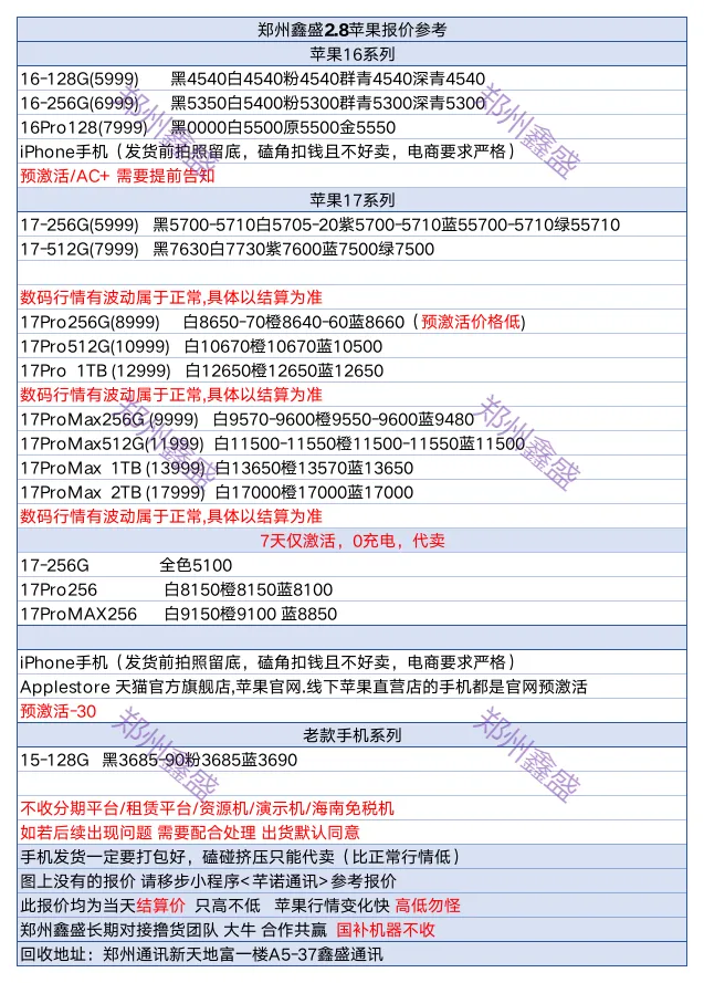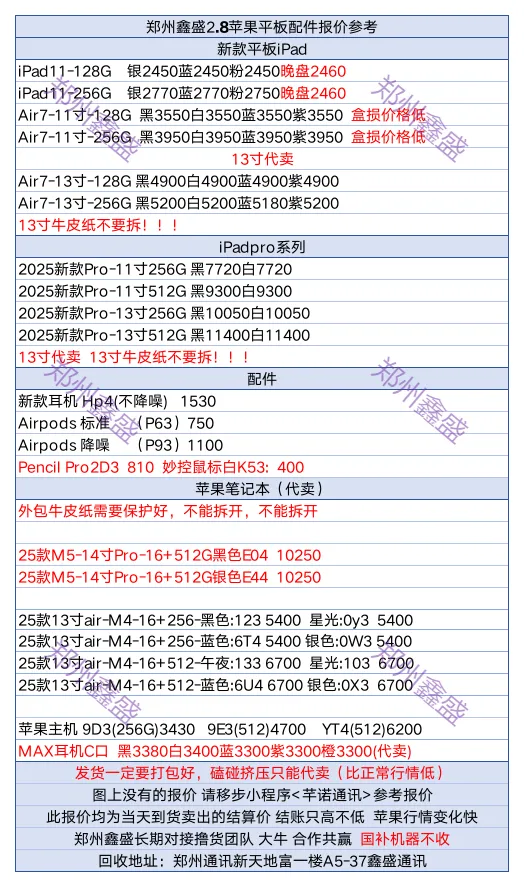 不会说漂亮话,也不懂什么洗脑套路,唯有实打实的诚意,苹果全系价格硬不硬. 看你们结算价格! 每天不限量求  🍎17/16/15  全系  🍎电脑·主机· 手表 ·平板 ·耳机配件等  有货全面来冲刺,跟郑州最高价冲刺