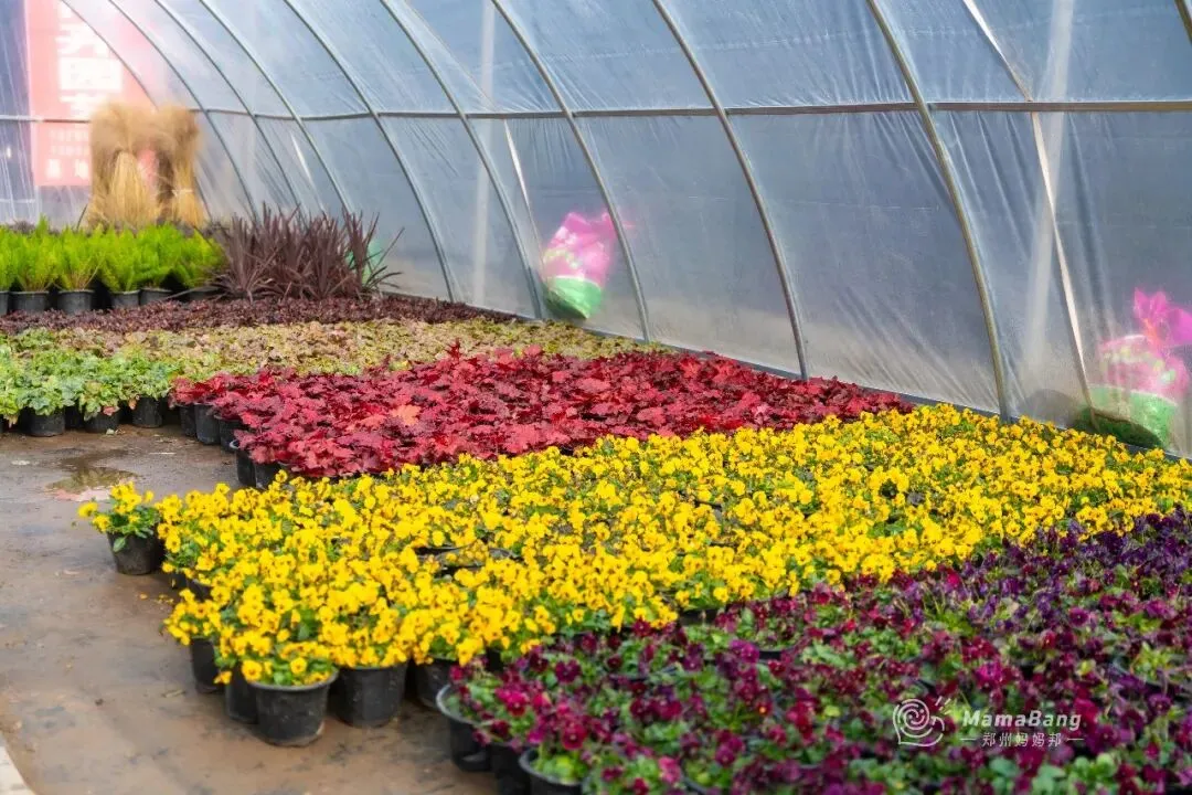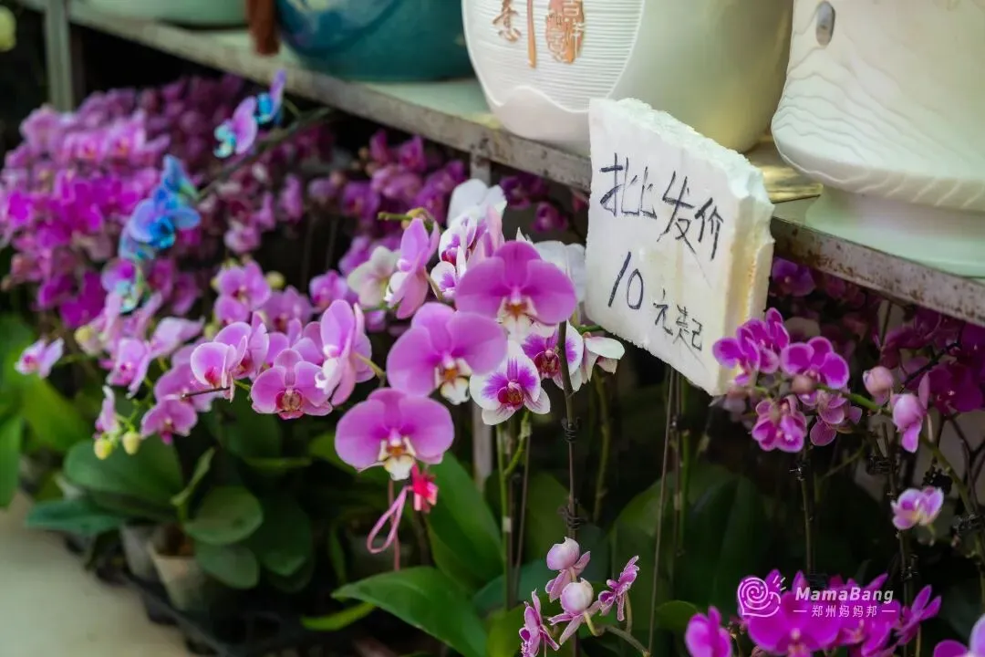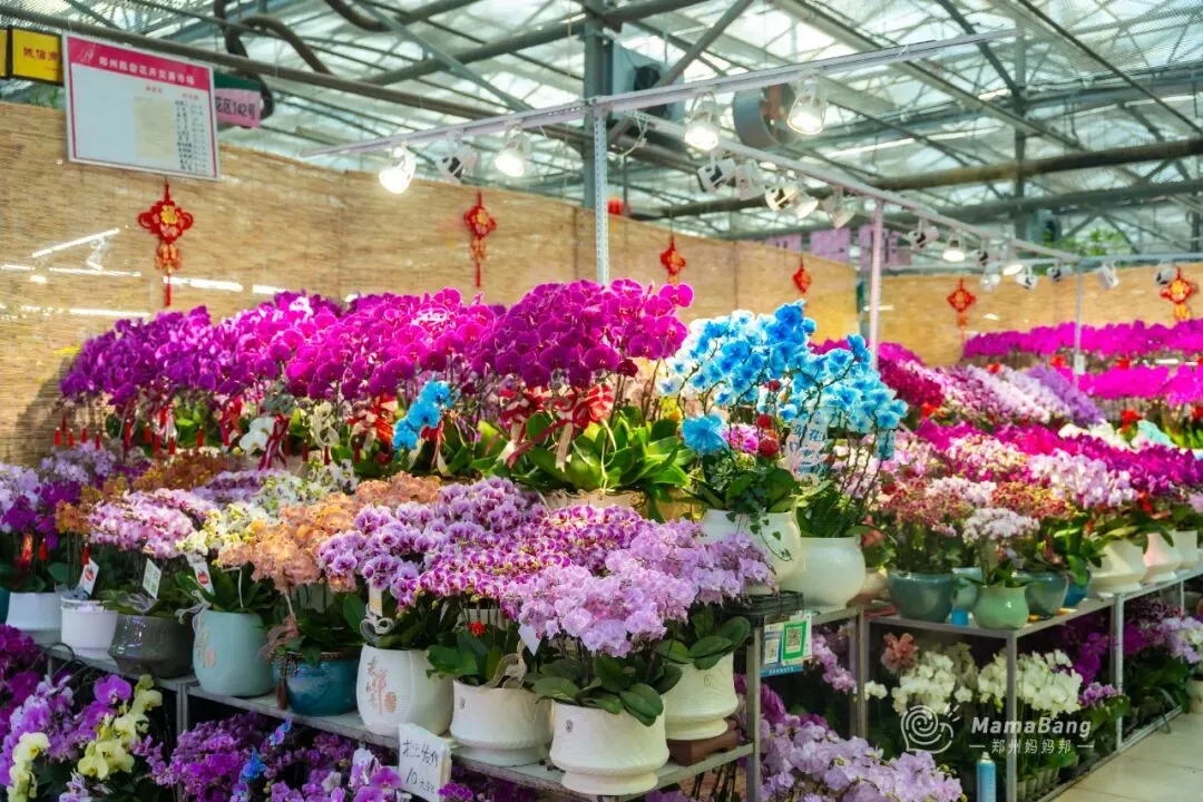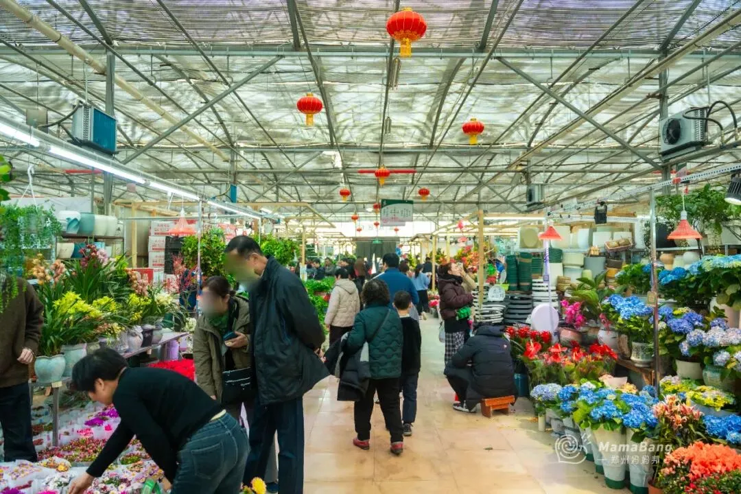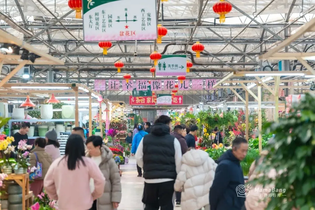 蝴蝶兰,寓意着幸福美满,大盆or小颗,价钱是不一样的。便宜的小颗徘徊在10~20之间,更有架势的大盆,二百多即可拿下。颜色也有很多种,挑一盆捧回家送爸妈,说不定过年收到的红包都会厚一沓。水仙花,有着“凌波君子”的雅号,过年谁家没有一盆啊。在这里15元就可以买到一颗,幸运的话养到过年刚好能开出美美的花。黄金果,远看金灿灿的,近看像一个个的小福娃,寓意着“黄金万两”。含羞草,非常适合小朋友养,每天碰碰叶片说个hello~踏进鲜切花区域,仿佛瞬间又置身于一个绚烂多彩的花园。花香四溢,每一朵鲜花都以其独特的姿态绽放,争奇斗艳。价格也很便宜,10块一束的雏菊,15元一束的玫瑰,买来送自己一周都有好心情。红灯笼、中国结、生肖贴…还有各种彩灯,款式很多能挑花眼。再请人手写几幅对联,贴在家门口,新年氛围感绝对拉满!带着孩子来逛的话,宠物区还可以遇到很多小可爱,心仿佛瞬间能融化。肥硕可爱的仓鼠,大耳朵的安哥拉兔、叫声清脆的小鸟,品种多样的猫猫狗狗…近距离接触这些小生命,不管大人还是孩子,都心生喜爱,也能治愈心灵!郑州虽然有很多花卉市场,但双桥绝对是个特别的存在,也很容易被忽略。但却凭借极低的批发价与丰富的品种,被郑州人称为买花性价比最高的宝藏地。位于惠济区江山路与开元路交叉口,离郑州市区有一定的距离,自驾会更方便。如果办公采买,或者搬家需要大量采购,更推荐直接来这个地方。这里面积非常大,以园林、苗木、花卉资材,以及配套的批发交易为主。虽然是冬天,全棚里暖意融融、花香弥漫,商户们忙着搬货、卸货、修剪、陈列……或是开着载满花卉绿植的小车,穿梭往来,一派热火朝天的备货景象!花卉种类也非常多,盆栽、绿植、鲜切花、多肉植物、园艺工具…价格嘛,普遍会便宜一些,当然也很考验你的砍价能力。买花的时候,一定要注意货比三家。不然转一圈,很容易买到手后又看到更便宜的。总之,建议来逛的话,有条件人手一架小推车,不然我怕你买得不过瘾!最后的最后提醒大家,花卉市场里挡不住有小板车和电动三轮车,逛的时候一定要留意车辆。希望大家都可以买到喜欢的花花,过个开开心心的年啊!