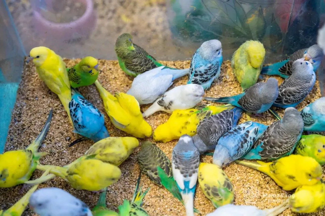 小孩子指着长耳兔走不动道,缠着妈妈买一只蓝色虎皮鹦鹉……