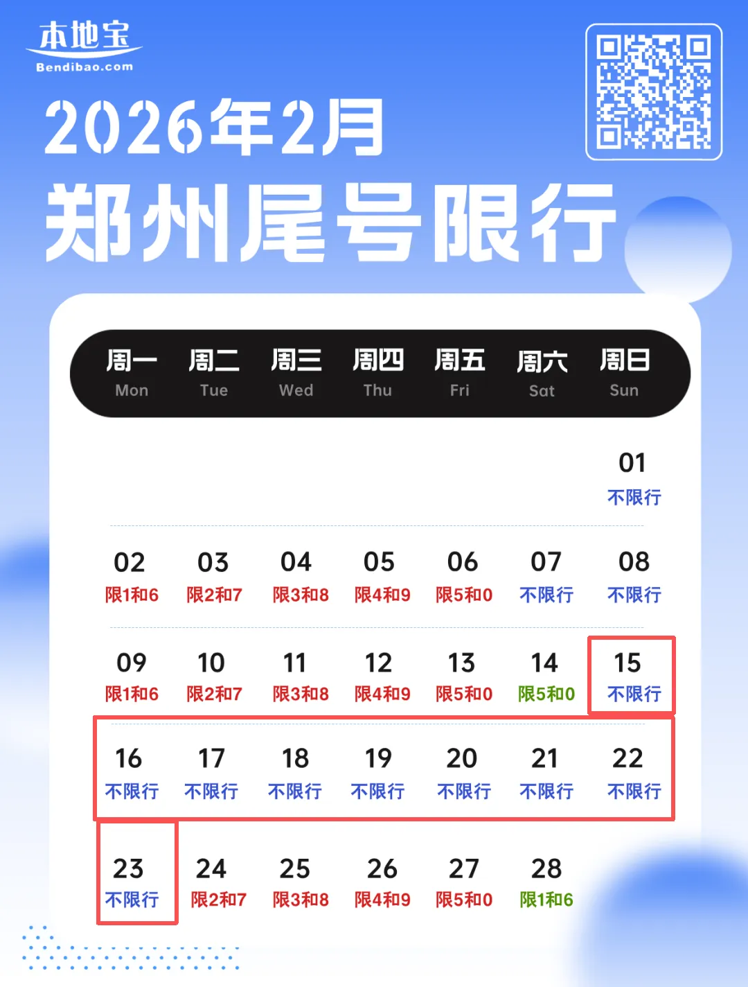 1️⃣2月15日—2月23日 不限行(连续九天)