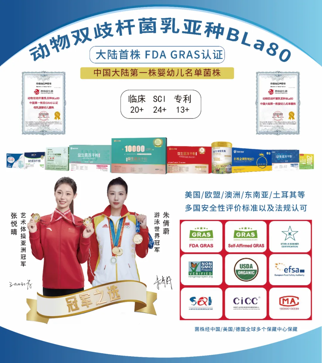 优质的益生菌产品,核心在于“菌株靠谱”。益友世家在菌株筛选与配方研发上,始终坚持“科学先行、临床验证”的原则。其核心菌株动物双歧杆菌乳亚种BLa80,源自四川高原健康母乳,不仅通过了严格的基因组学分析与安全性评价,更累计完成20余项人体临床试验,覆盖婴幼儿、成人、中老年等多个人群,充分验证了菌株的功效与安全性。