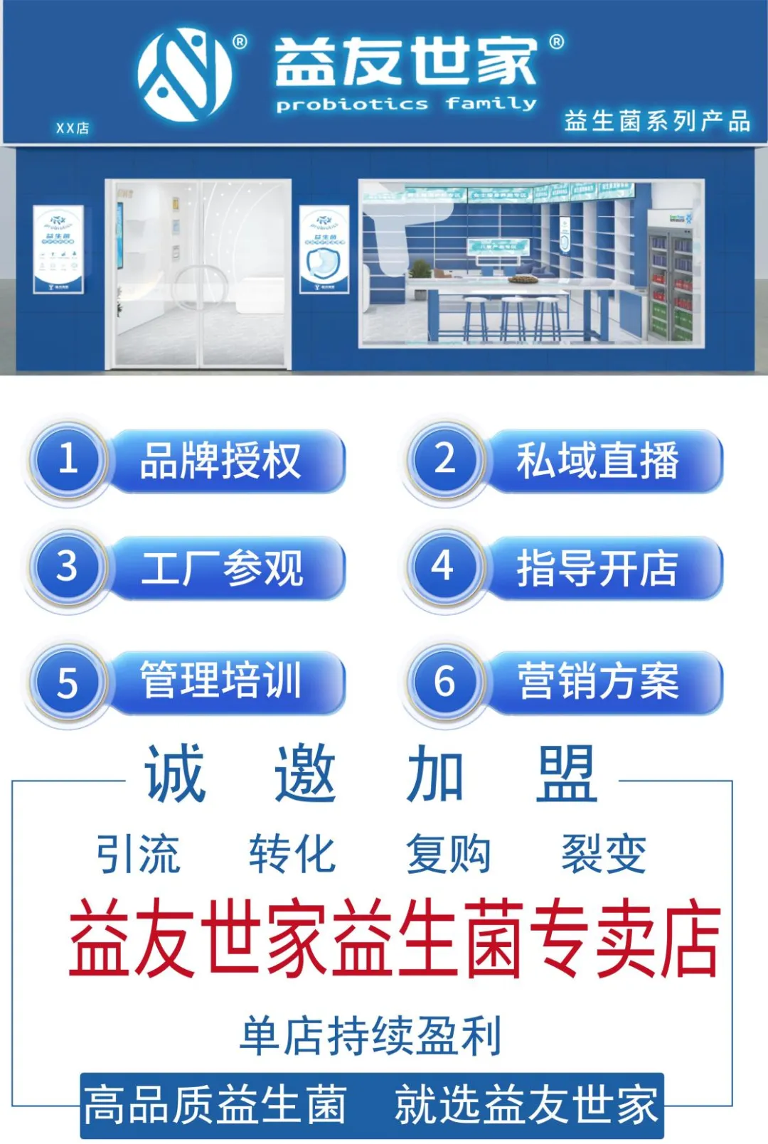 2、在动销支持层面,益友世家提供从“门店形象设计、开业活动策划”到“全年节庆营销、大型品牌活动”的全流程方案。无论是益生菌文化节、健康科普进社区等引流活动,还是宣传海报、折页、体验装、促销品等物料支持,益友世家都全程提供,帮助合作伙伴降低初始投入成本,快速打开当地市场。