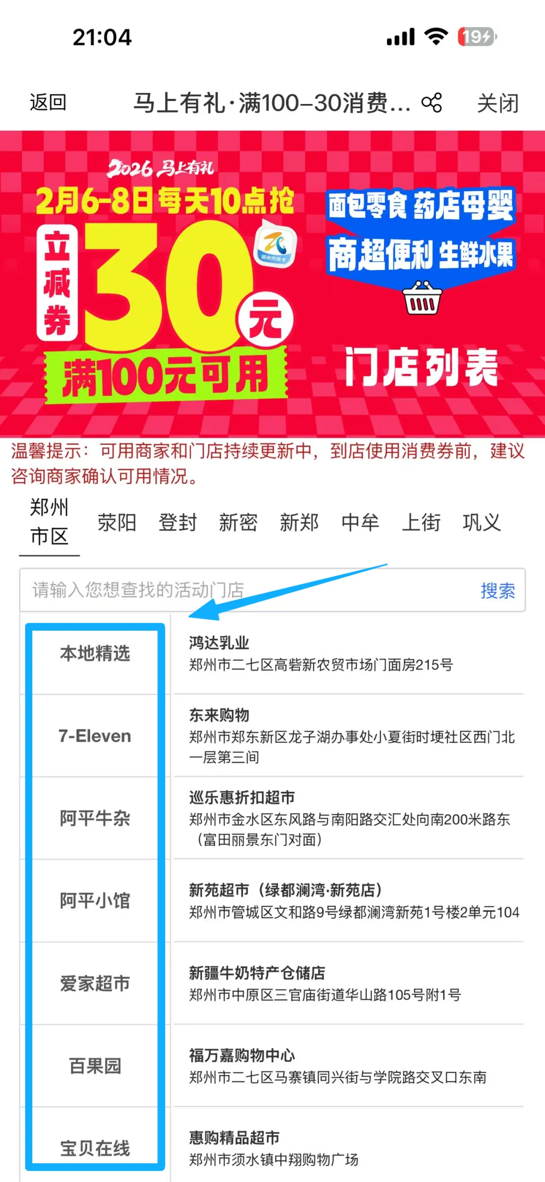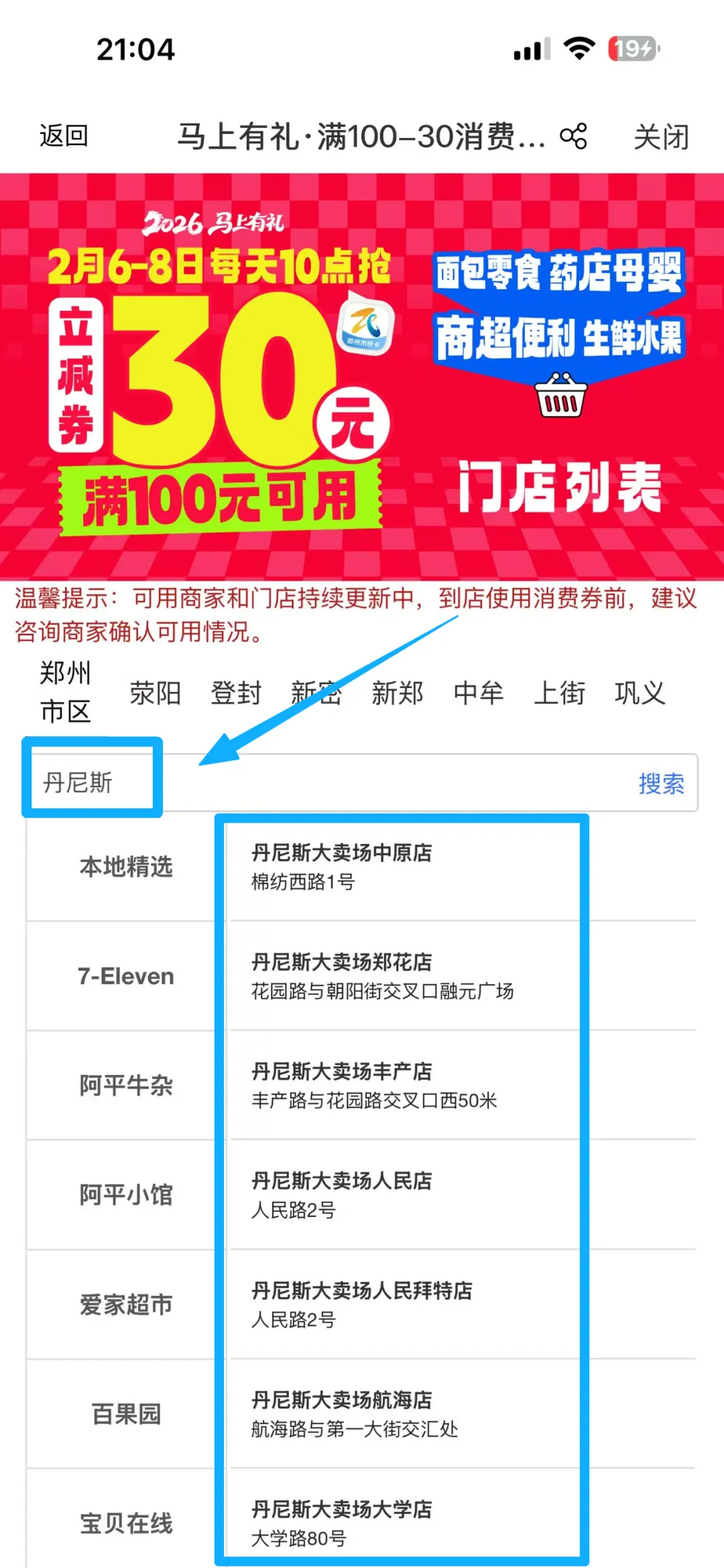 适用商家:领券后在全市4000余家线下门店消费(折扣牛、丹尼斯、多乐囤、锅圈、鲜风生活...商超、餐饮、便利店、买药都包含在内)