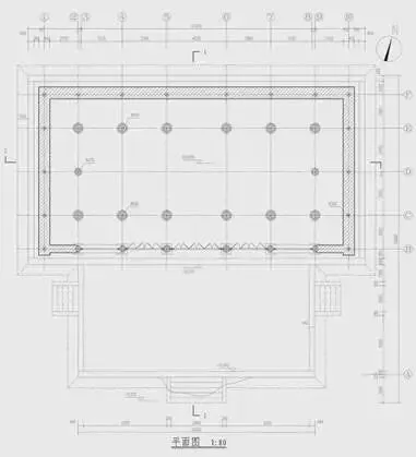 郑州文庙始建于东汉明帝永平年间,初建规模约5万m2,现存大殿为清朝晚期修缮建筑。近年来,多种原因造成地基软化、沉陷、文物本体酥碱,周围地势抬高,已经明显与四周不相协调。大成殿所处地势偏低,一旦下雨容易被淹。大成殿面积为320m2,重约4000kN,柱网布置如图1。