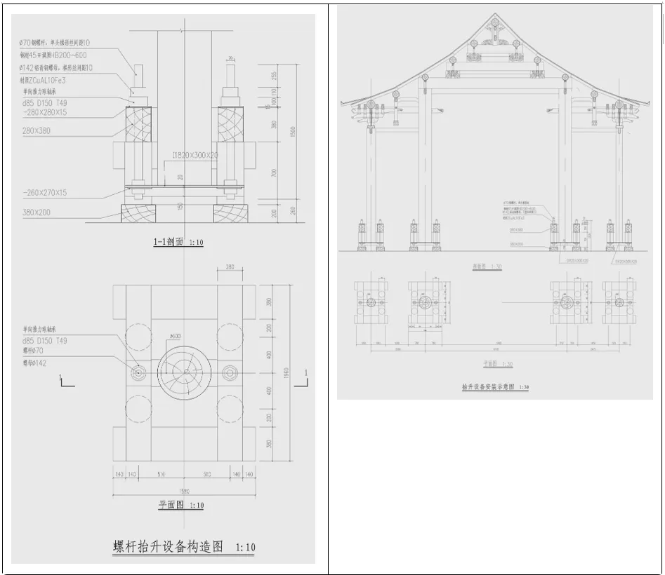 大成殿在整体顶升时,由于在每根柱子旁边的工作人员具有独立性,所用的丝杠精度也不一定完全相同,因此,在顶升过程中采用如下保障措施。