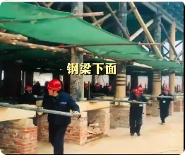 通过大量的试验证明,采用将大殿的柱、梁用棉布片包裹,再将支撑拉杆放到该位置,然后用铁丝将其与柱子拧到一起的方法,既保证了连接强度,又不会损坏大成殿的柱、梁,为保证大成殿在整体顶升时能成为一个完整的整体,因此在加固设计时将相邻的每根柱和梁之间用斜撑进行连接,如图5所示。