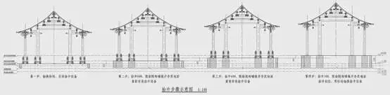 大成殿顶升前,在每根柱上安装垂直标尺,在大成殿的中央安放水准仪,每连续提高20mm时,要对每一根柱子顶升的高度进行检测,检查顶升高度是否一致,如不一致应及时进行调整,确保每根柱的某一标定断面始终保持在同一水平面上;同时在大成殿四角的柱安装标尺和经纬仪,检测大成殿在顶升过程中是否发生了水平方向的位移,确保建筑物在顶升过程中,不能因柱子的倾斜过大而发生倒塌。