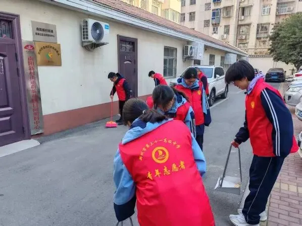 “清扫落叶和擦拭楼梯扶手时,我才真正体会到平日保洁工作的不易。”一位高二年级的志愿者擦着额头的汗珠说道,“但看到爷爷奶奶们对我们竖起大拇指,夸赞环境变好了,心里特别满足,再累也值得。”校团书记刘新新也在现场感慨:“劳动教育的真谛,就在这扫帚尖、抹布上。今天学生们不仅美化了环境,更在实践中锤炼了服务社会的担当,这份责任感将伴随他们成长。”