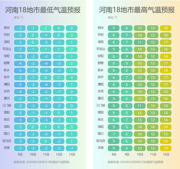 据河南气象,预计今明两天,弱雨雪和大风将再度来扰。主要是在今天白天,河南自西向东会零零散散飘点小雨雪,郑州今天阴天有零星小雨雪。9日、10日分别刮起偏南风、西北风且阵风较强;9日气温略降体感偏冷,10日起河南开启大回暖,大部最高温将从不足10℃升至近20℃,最低温也会升至冰点以上。春节假期将近,春运返乡也进入了高峰期,提醒大家在出发前关注最新的天气预报和路况信息,提前规划好行程。