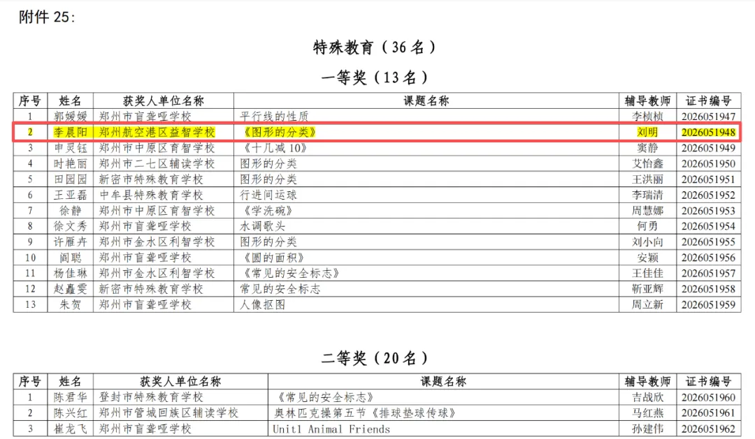 荣誉的背后,是教师们对特殊教育事业的坚守与深耕,也是学校重视教学创新、赋能教师成长的成果体现。未来,郑州航空港区益智学校将继续秉持育人初心,打磨优质课程,为特殊学生的全面发展保驾护航!