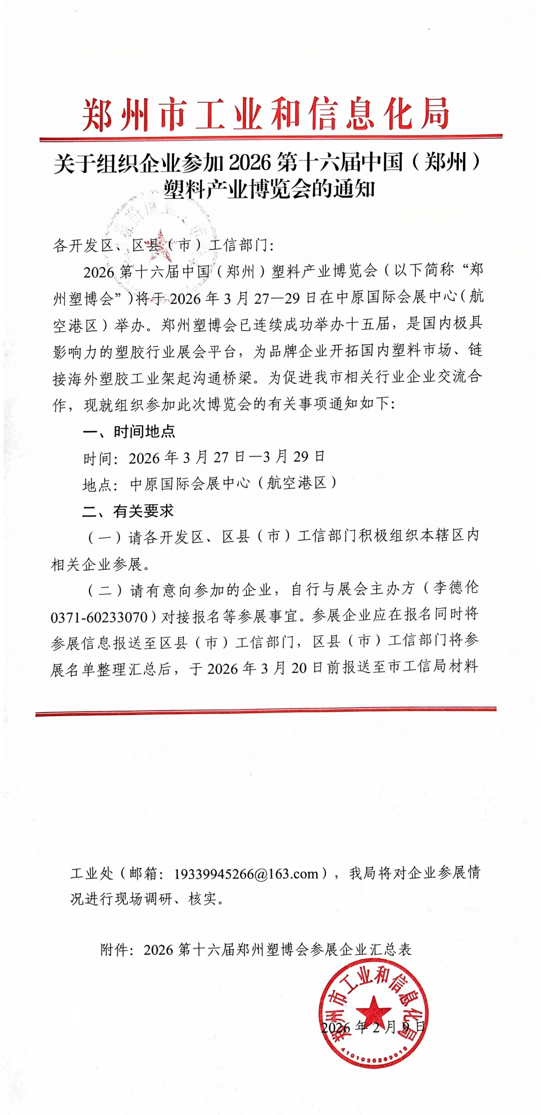 欢迎相关企业积极联系报名参加郑州塑博会:0371-60233070
