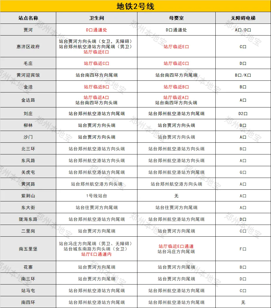 ✅小编为大家整理了2号线各个地铁站点的卫生间/母婴室/无障碍电梯的位置分布,其中标红的是指在地铁站厅(不用刷码进入地铁就可以到达)