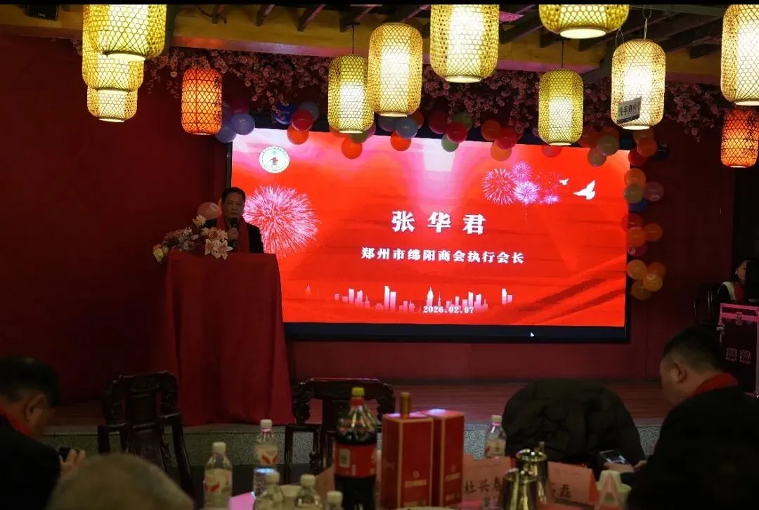 执行会长张华军发表致辞。他表示,过去一年在豫绵商迎难而上,为两地发展贡献力量,商会凝聚力与社会美誉度持续提升。结合自身在中央空调行业的体会,他强调商会应聚焦系统优化提升服务效能,强化节能创新赋能企业转型,深化互联互通构建合作生态,并担当社会责任擦亮绵商品牌。张华军号召全体会员同心携手,共创事业新辉煌,并致以新年美好祝福。