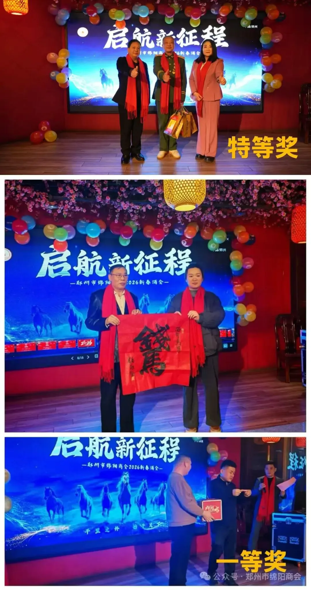 郑州市绵阳商会讯 岁序更替,华章日新。2026年2月7日下午,郑州市绵阳商会2026年“绵商情聚·共启新程,同心聚力·共启新章”新春联谊会在郑州隆重举行。来自郑州、绵阳两地的有关领导、社会各界嘉宾、兄弟商协会代表及商会全体会员近两百人欢聚一堂,畅叙乡情友谊,共话合作发展。