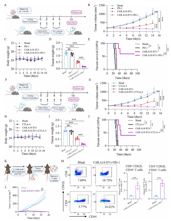 CAR⁴SF¹-EVs 与免疫检查点抑制剂协同增效,诱导长效免疫记忆
