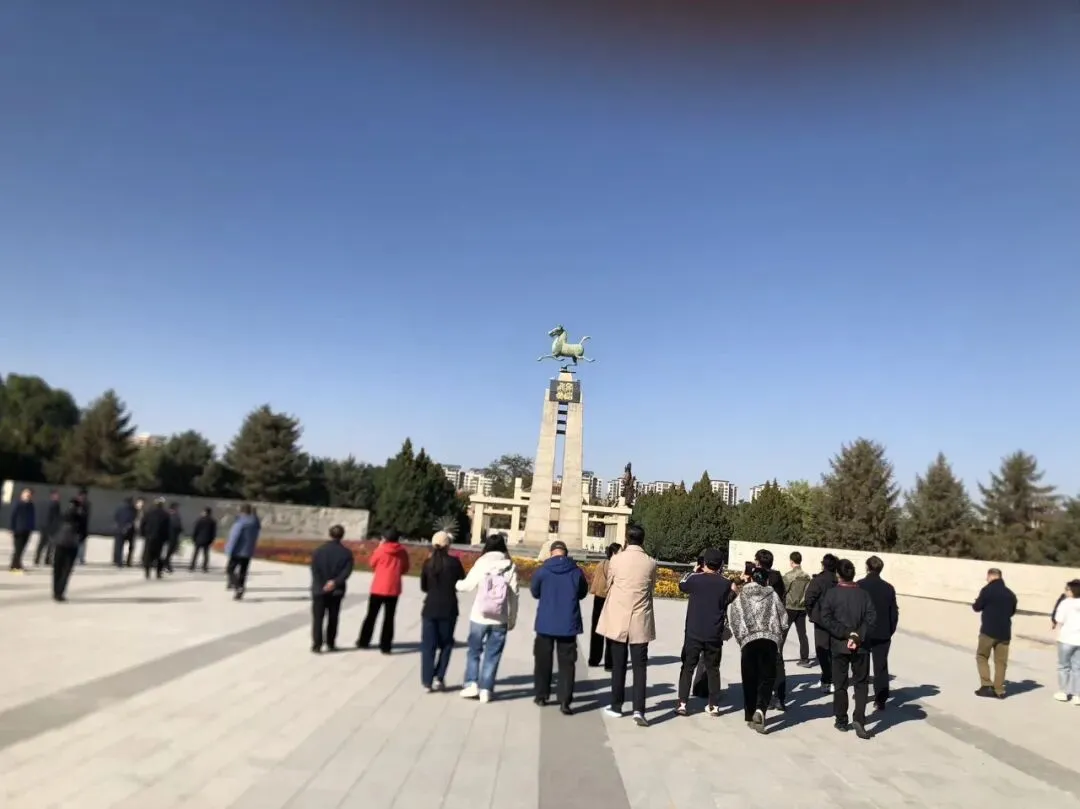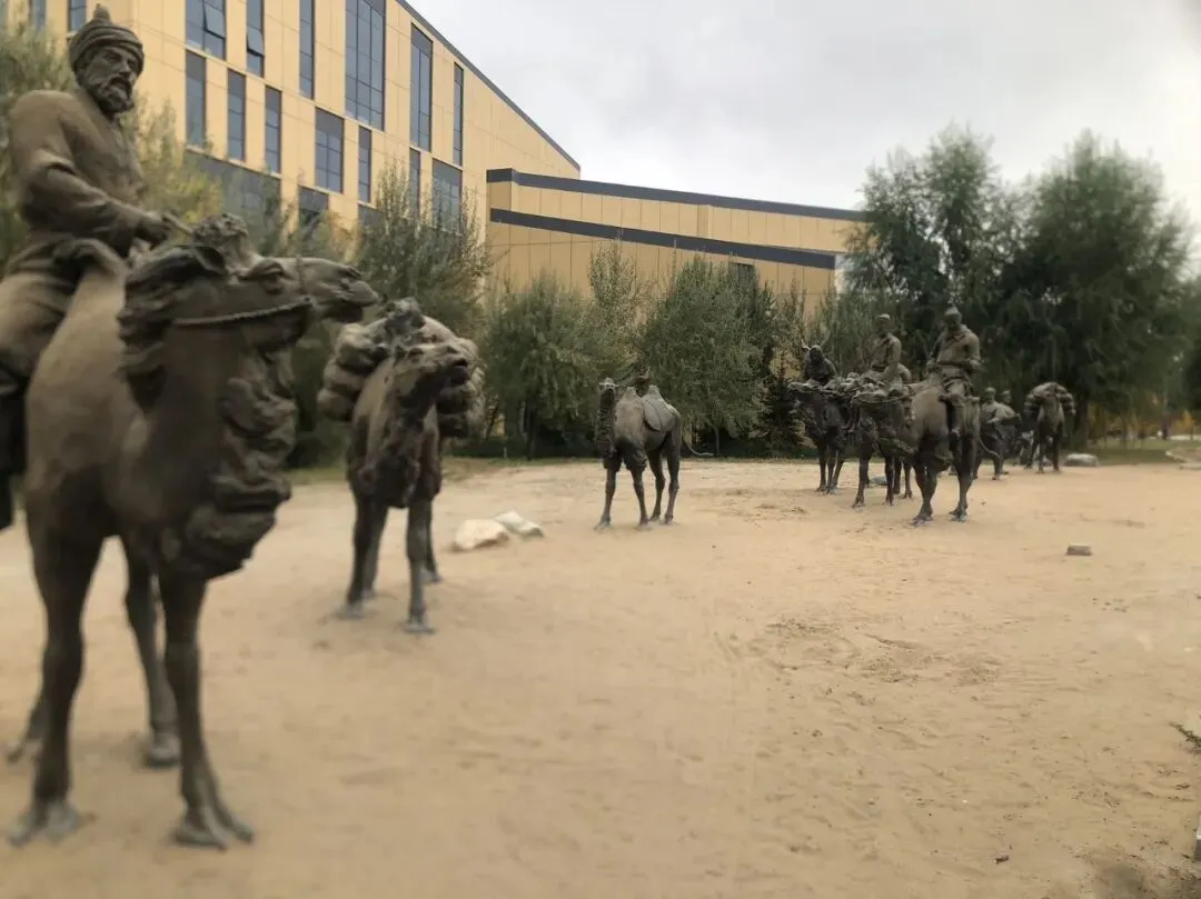 下图为咸阳茯茶小镇,在西行的商旅雕塑前留影。