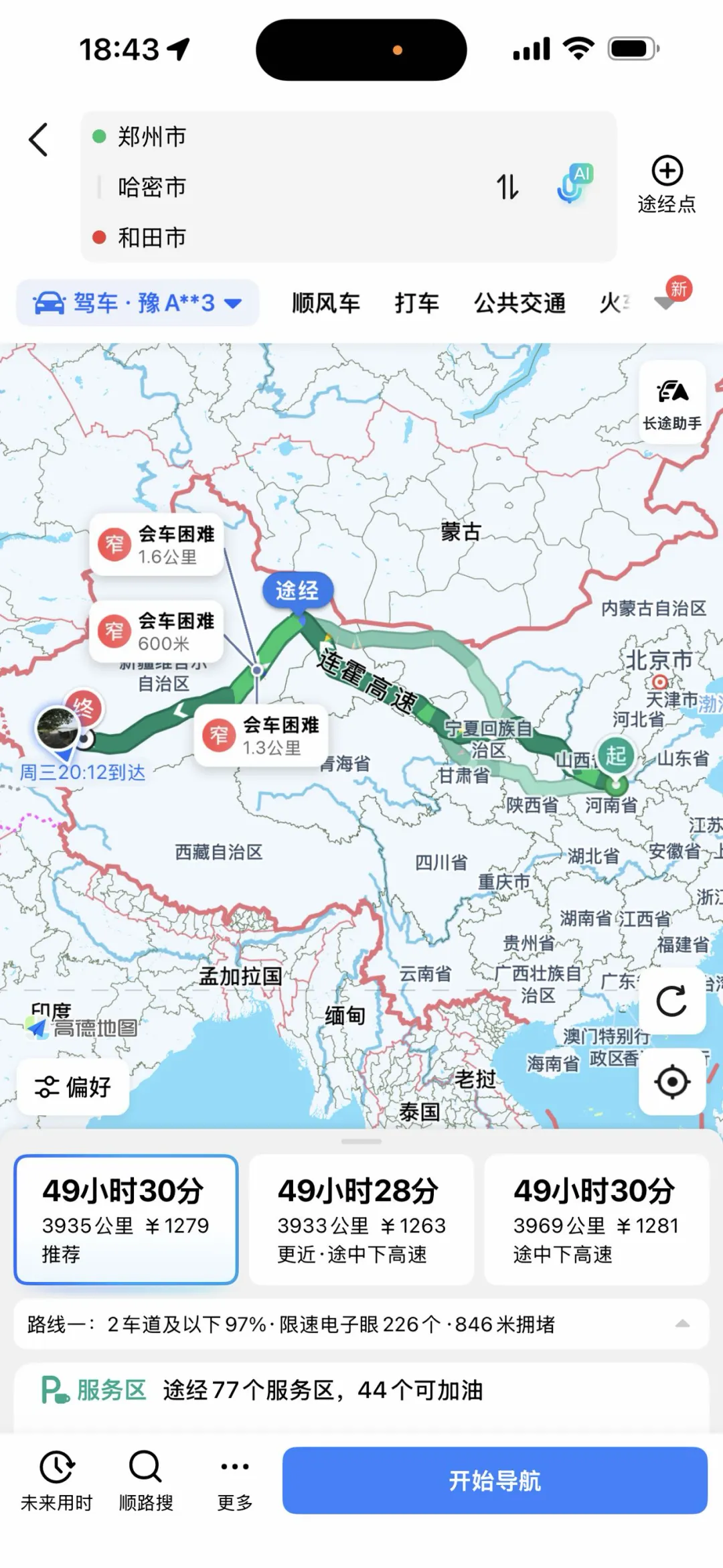 自驾从郑州出发,到新疆的南疆和田,大致有三条道路。