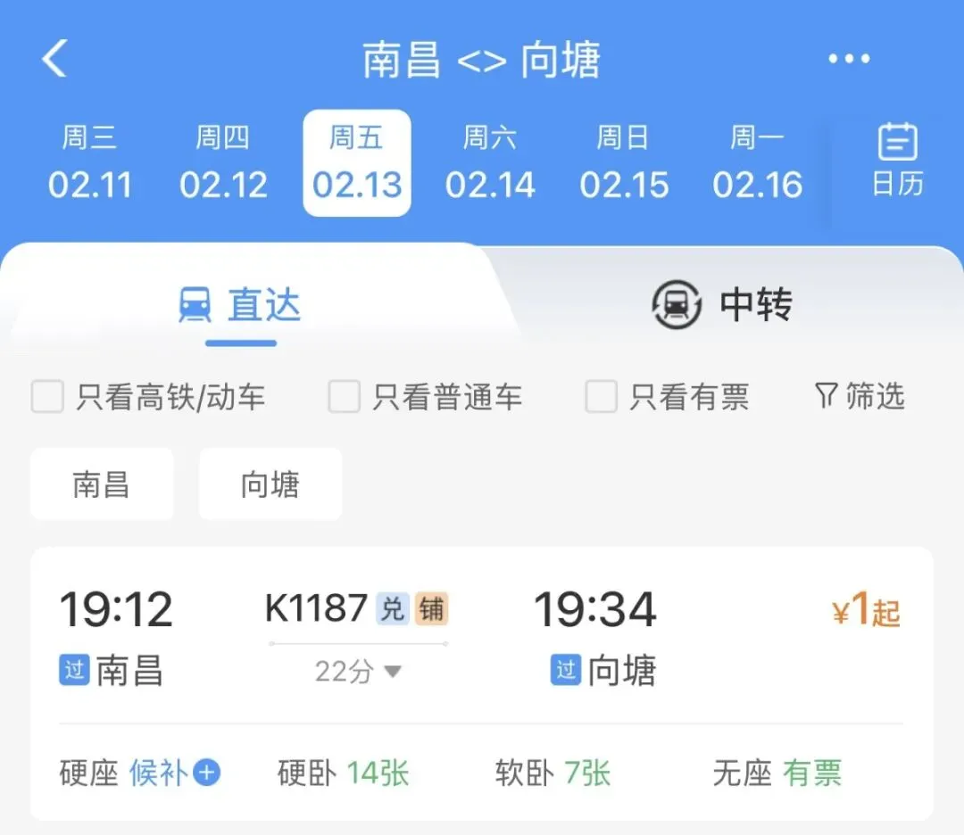 你想过吗?2026年春运期间,你还能买到最低1块钱的火车票!近日,有网友晒出一张南昌到向塘的火车票,票价只要1元;春运期间,当热门线路一票难求、抢票软件刷到“手软”时,另一些线路的价格却悄然“骨折”。