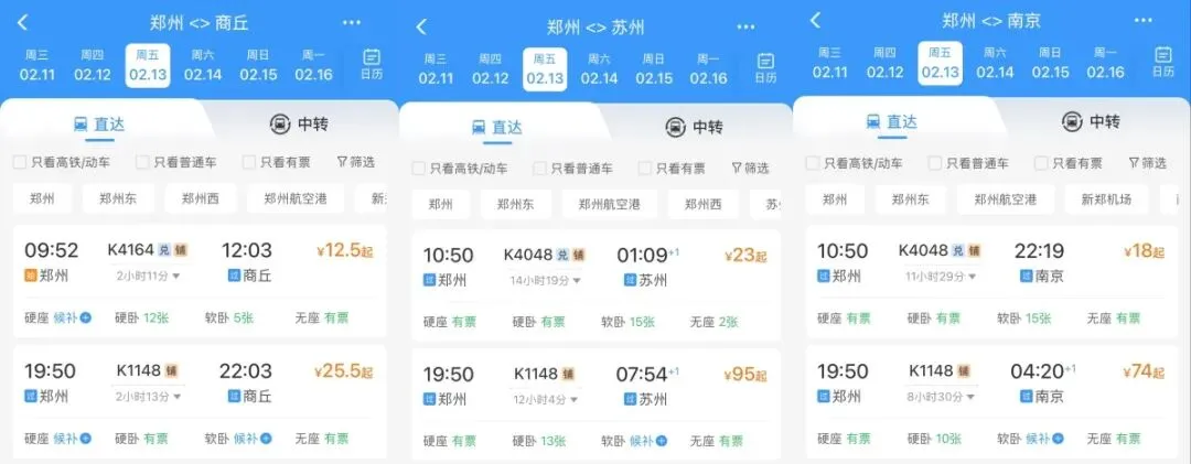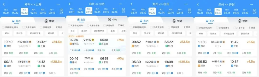 春节郑州到开封火车票仅2.5元,到上海24.5元,到杭州53.5元......多地票价低至两位数且余票充足!12306:这是给旅客的福利