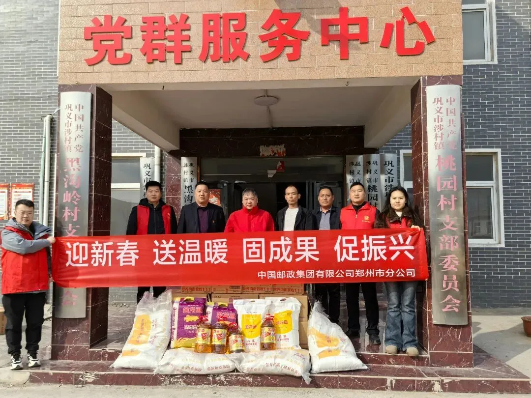 隆冬时节寒意浓,走访慰问暖人心。2月9日,在新春佳节即将来临之际,受郑州市邮政分公司党委的委托,市分公司党建工作部负责人李桦江带队赴定点帮扶村——巩义市涉村镇桃园村,开展“迎新春 送温暖 固成果 促振兴”春节慰问活动。慰问组通过现场交流沟通、入户走访等方式,把组织的深切关怀与新春祝福精准送达帮扶群众,以实际行动推动定点帮扶工作走深走实。