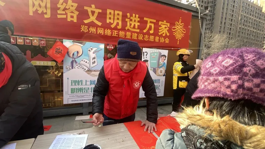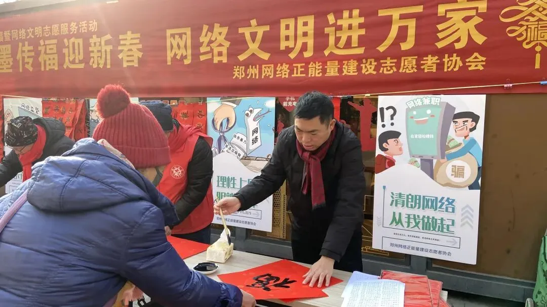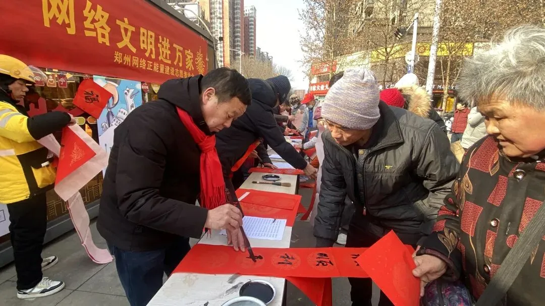 2月7日,由郑州网络正能量建设志愿者协会举办的“翰墨传福迎新春 网络文明进万家”新春送福暨网络文明志愿服务活动在农科路科明路户外工作者服务站旁温情启幕。志愿者以笔墨为媒、以文明为核,将中华优秀传统文化与网络文明理念有机融合,让年味与文明味相得益彰。
