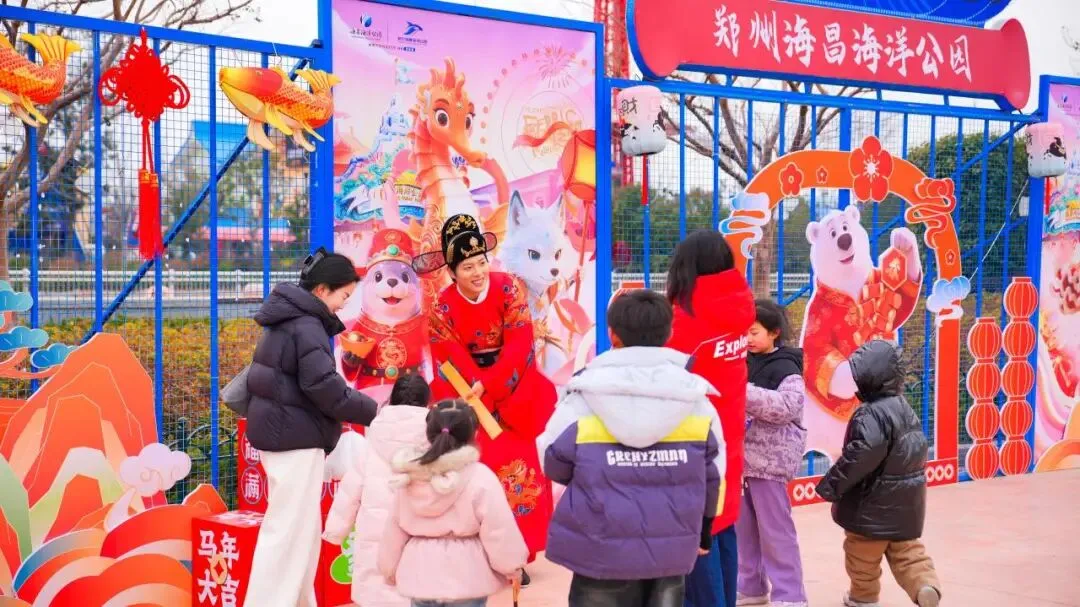 活动期间,郑州海昌开启12小时超长畅玩模式,百余场演出轮番登场。白天,《彩竹马踏歌》《瑞骥迎春非遗大巡游》等十余项非遗演艺在喝彩声中赓续文化脉息;《水下刀马旦》《哪吒闹海》等水下山海国潮秀在蔚蓝水波中重塑文化魅力。八大神仙NPC骑马送福,驸马携诰命夫人反向招亲,孩子们与神仙NPC斗智斗勇,全家一起逛马年特展,体验非遗手作,免费采摘冰糖葫芦。夜幕降临,《海洋神仙机甲大巡游》汇成星河,《神仙璀璨花火节》融合药发木偶、打铁花、傩舞等精彩内容点亮星夜,大家一起为新春送上祝福。