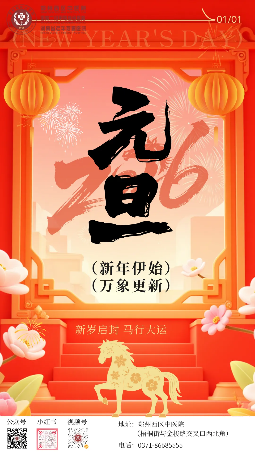 郑州西区中医院恭祝元旦快乐。