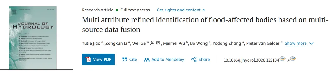 Jiao, Y., Li, Z., Ge, W., Wu, M., Wang, B., Zhang, Y., & van Gelder, P. (2026). Multi-attribute refined identification of flood-affected bodies based on multi-source data fusion. Journal of Hydrology, 135104. https://doi.org/10.1016/j.jhydrol.2026.135104