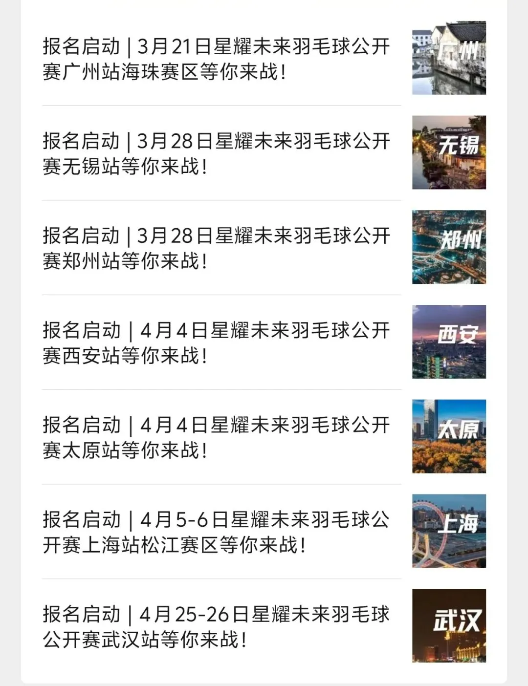 【七城联动,星耀未来】广州、无锡、郑州、太原、西安、上海、武汉‖2026羽毛球公开赛燃情启航