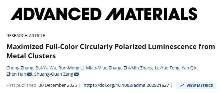 作者姓名:Chong Zhang, Bai-Yu Wu, Run-Meng Li, Miao-Miao Zhang, Zhi-Min Zhang, Le-Yao Feng, Yan Qin, Zhen Han*, Shuang-Quan Zang*