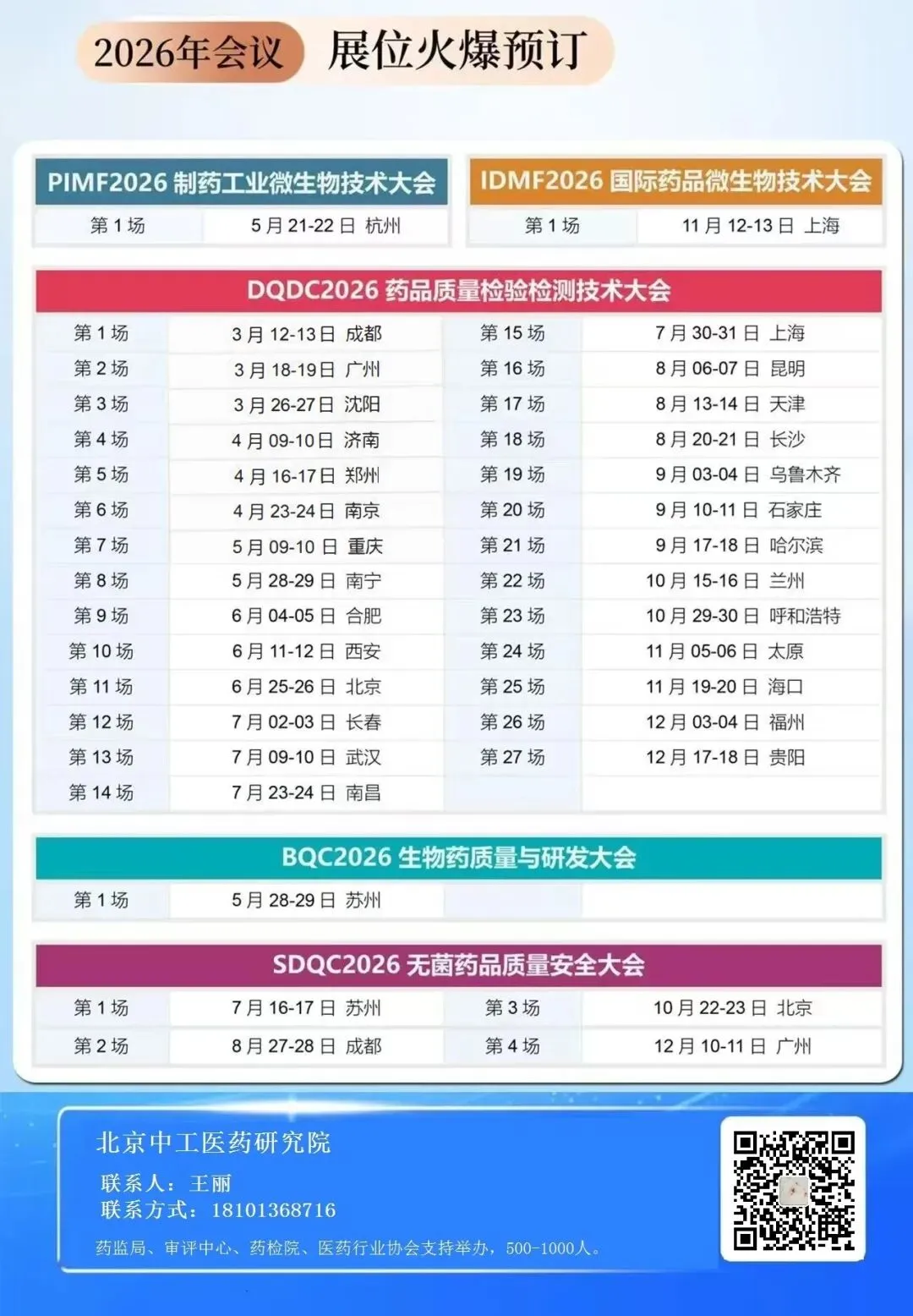 会议将围绕药品全生命周期质量监管、先进分析技术应用、实验室管理、数据完整性及数字化检验转型,以及2025年版《中国药典》执行要点、实施策略与合规实践等热点议题展开交流与研讨。诚挚邀请全国制药企业、检验机构、科研院所及相关领域同仁积极参会,共同分享经验、碰撞思想、凝聚共识,携手促进药品质量安全保障能力再上新台阶!