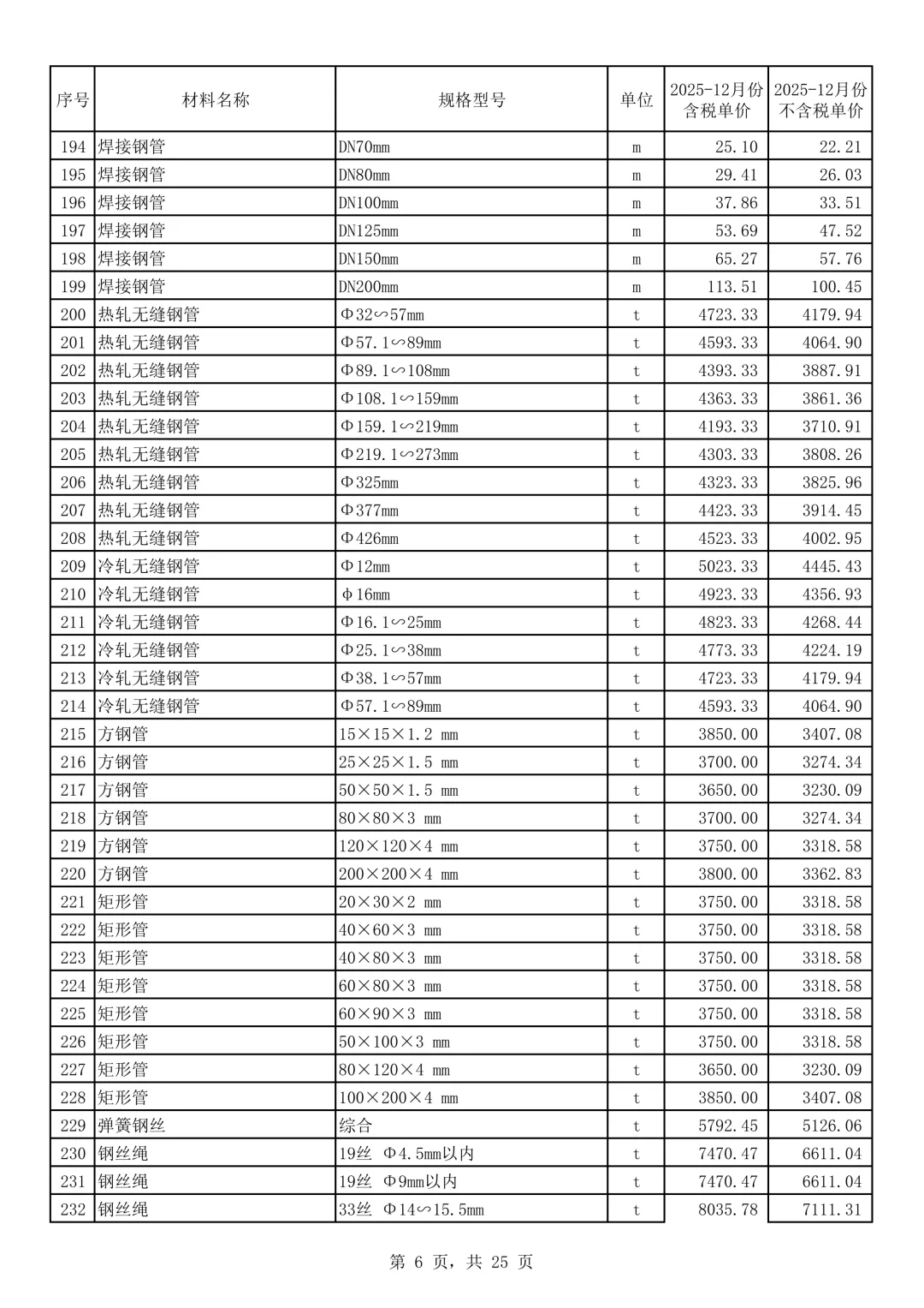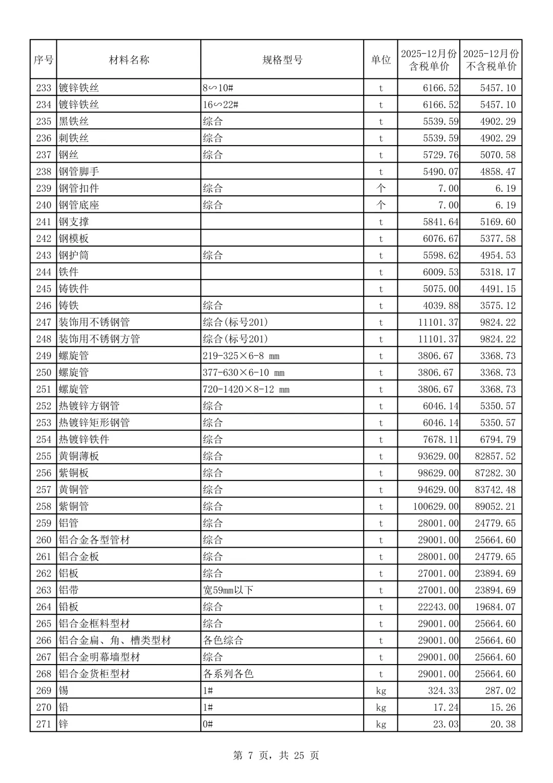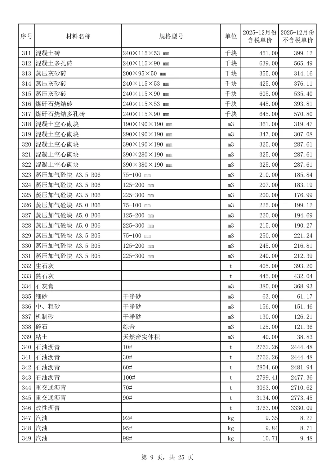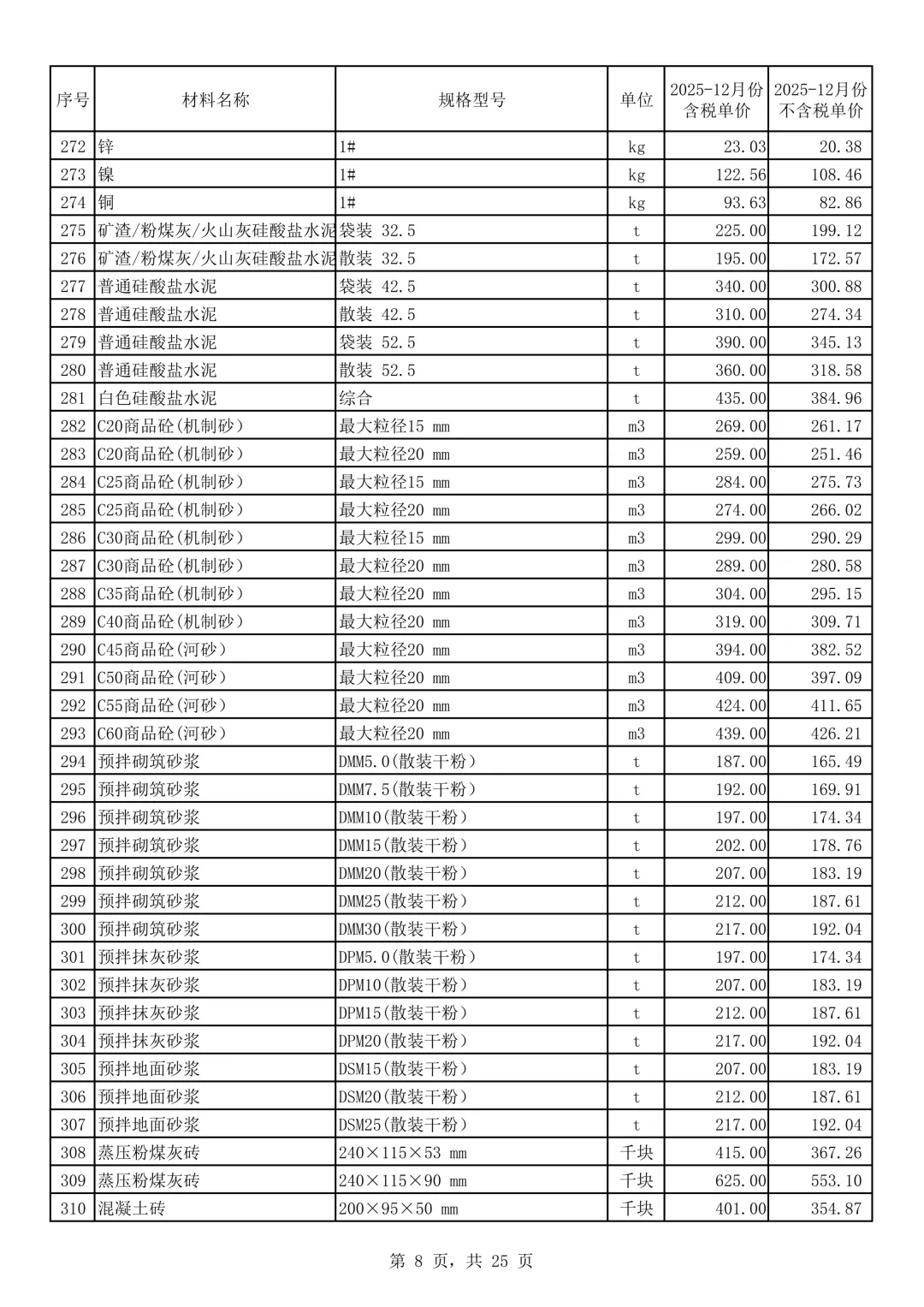 附件:2025年12月份郑州市建设工程主要材料价格信息